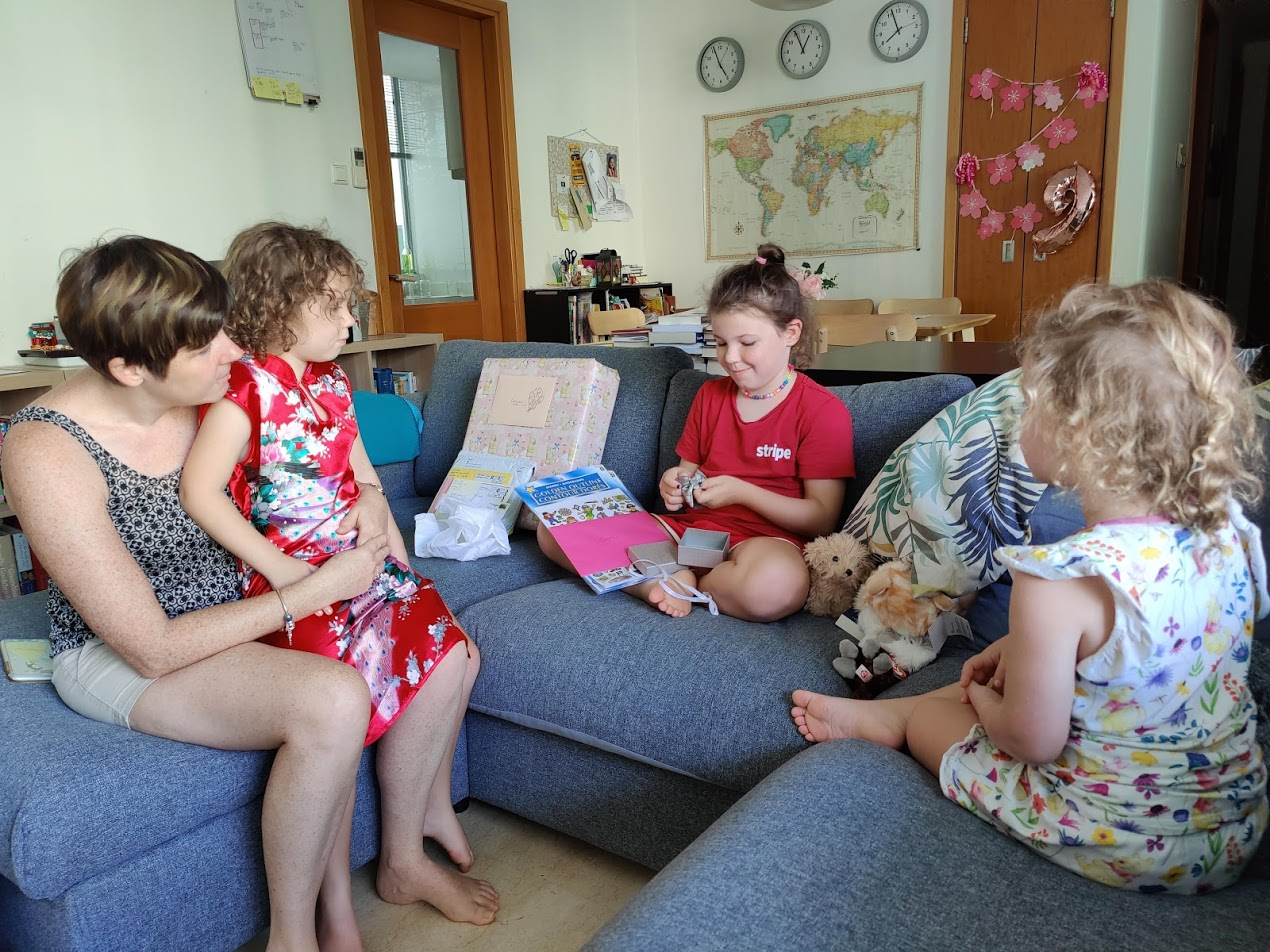 We had morning present opening, a lunch time swim in the Clubhouse Pool with Daddy too (that pool is special, because it's a longer walk to get there), and ate homemade chocolate cake at tea time.