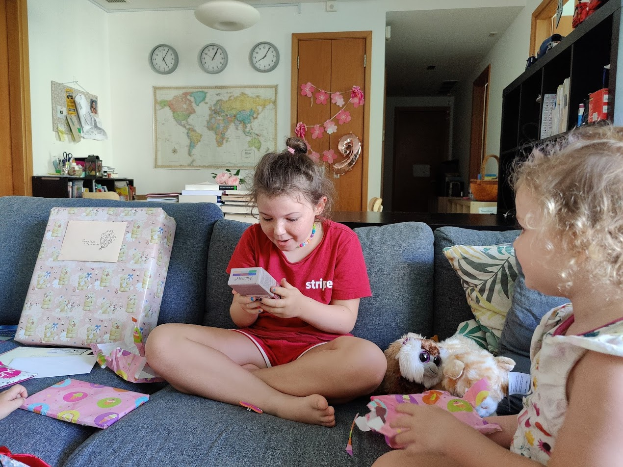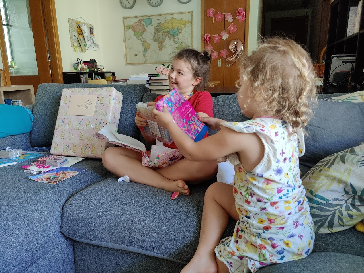 She has new books to read and she had a colouring contest with everyone to try out her new pens.