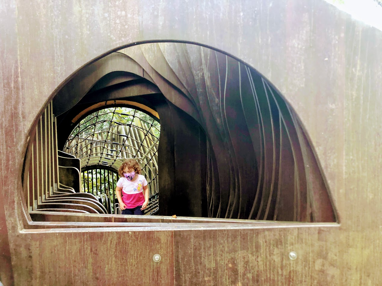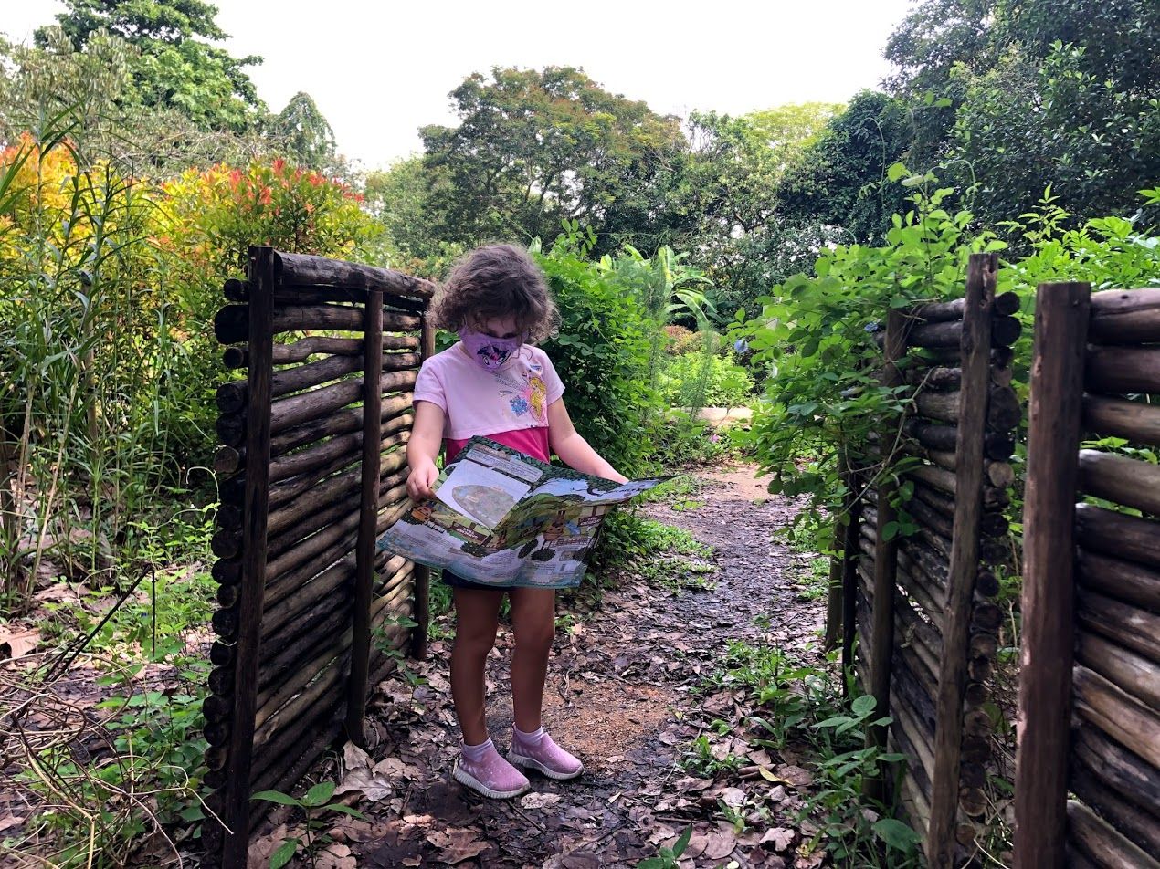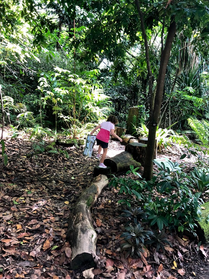 The guard gave MsE a paper map and she ran with that challenge. She figured out where she wanted to go and which way to head at all the forks in the path. She used the map for all of our directions. MsC's first destination of choice was the Tree House, but we climbed over or walked through any thing that looked interesting on our way there.