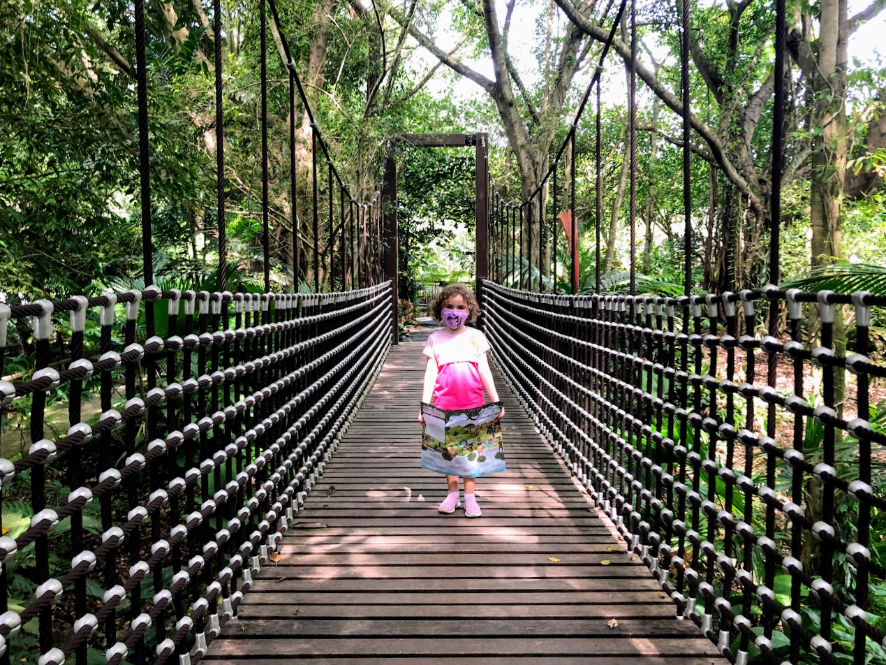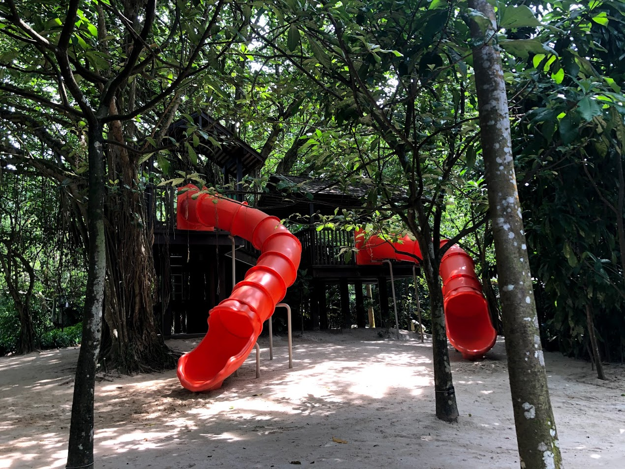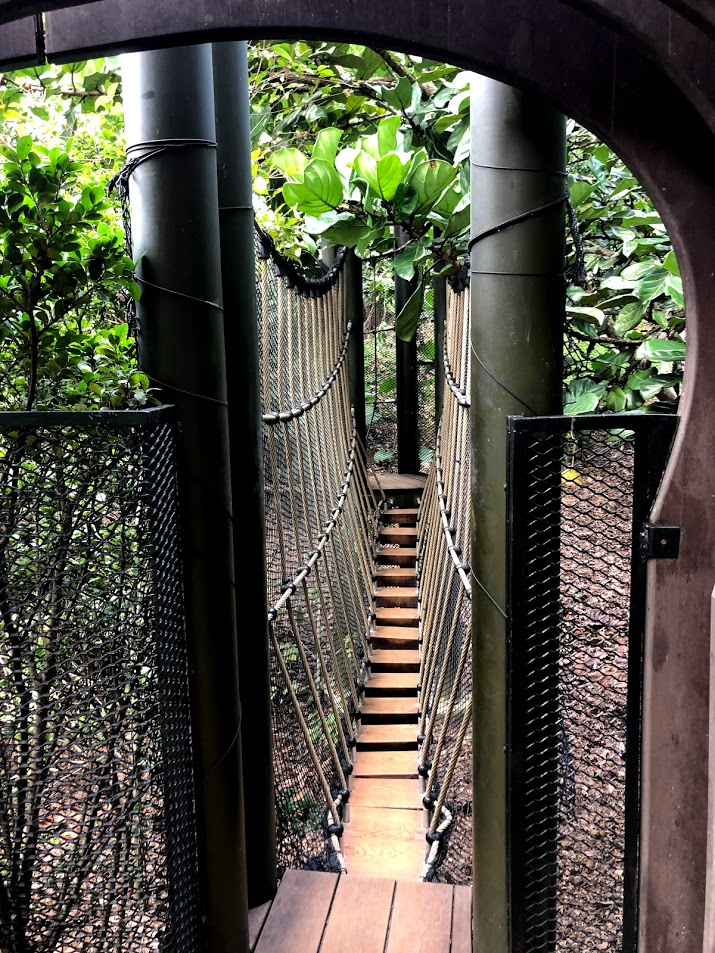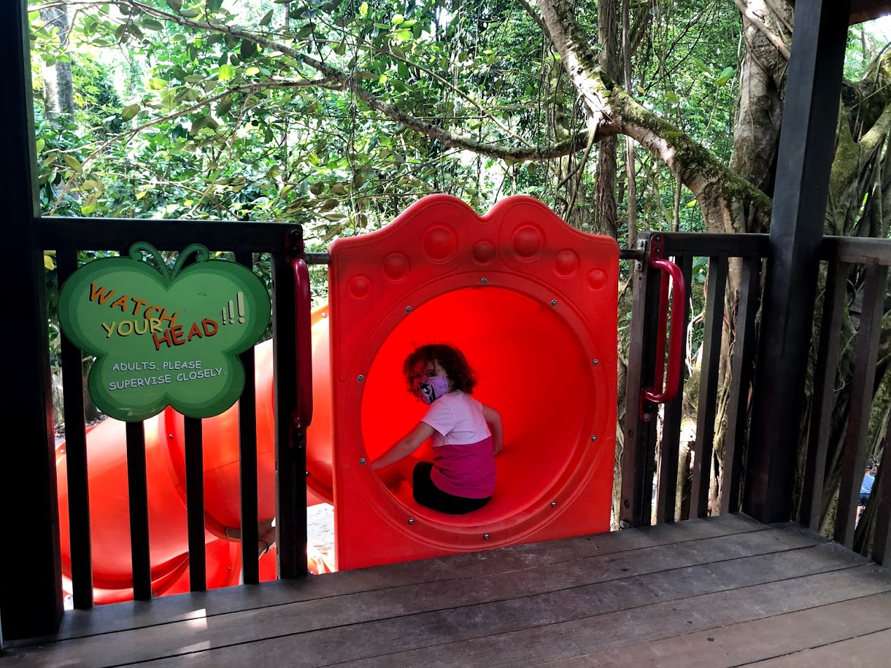 The 2nd tree fort is my favorite. It's got stairs and bridges and a net area, which happened to really challenge MsE because of the ants. Honestly, they're every where in Singapore - Everywhere.
