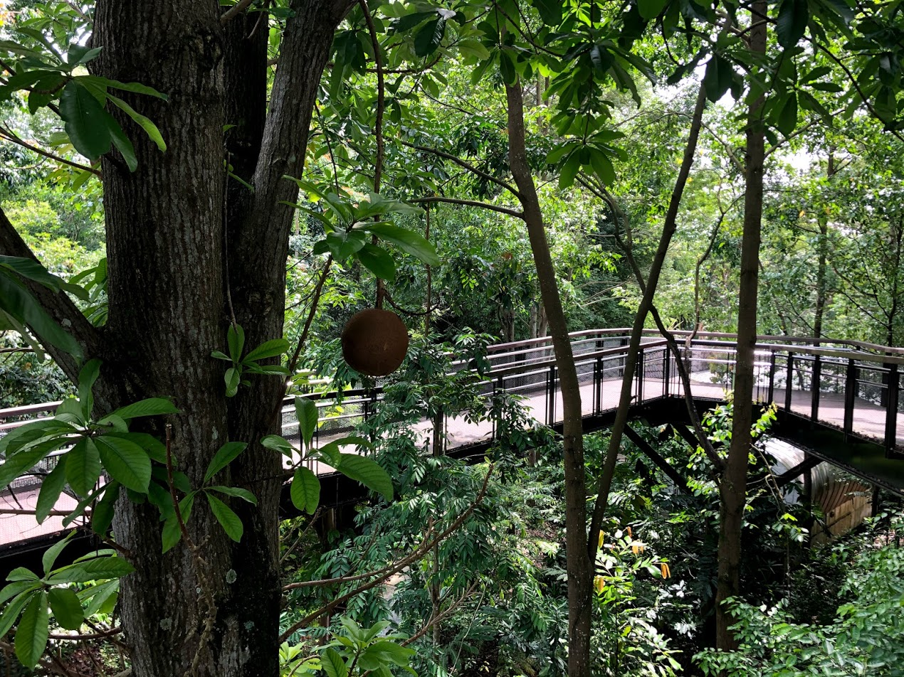 On our way to Tree Fort Number 2, we got into some raise tree top path and we marvelled over a tree's giant seeds. I don't think they're coconuts. It wasn't a palm tree. But what do I really know about coconuts. They were of a similar size.