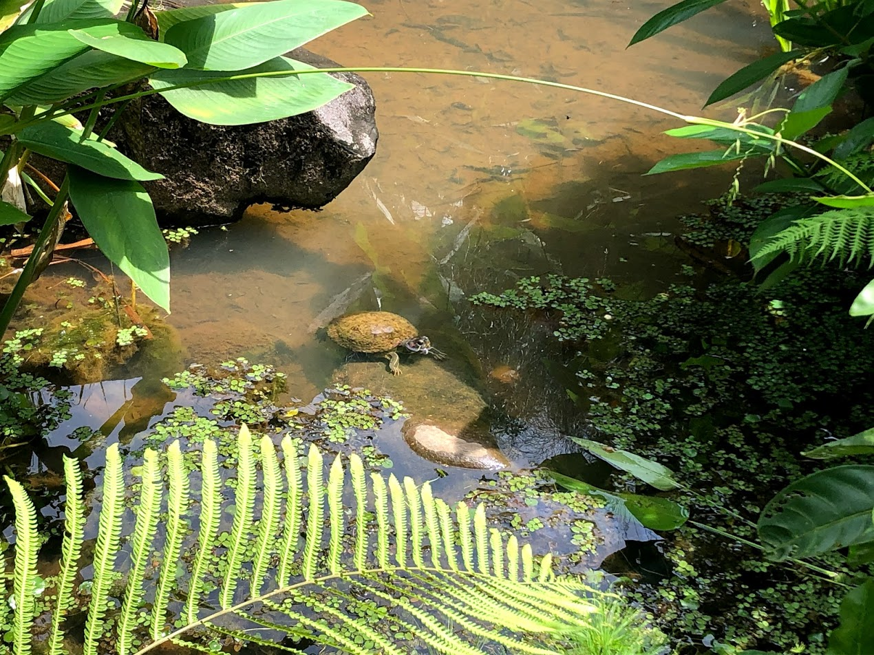 MsE also found a turtle in the pond. We found butterflies in all kids of colours near the pond. They were lilac purple, deep red, bright yellow, patterns of browns, or a mix of multi-colours.