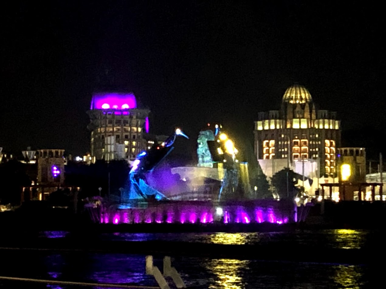 We saw a few fireworks go off to grab our attention, and then a "Transformer" came out of the water.