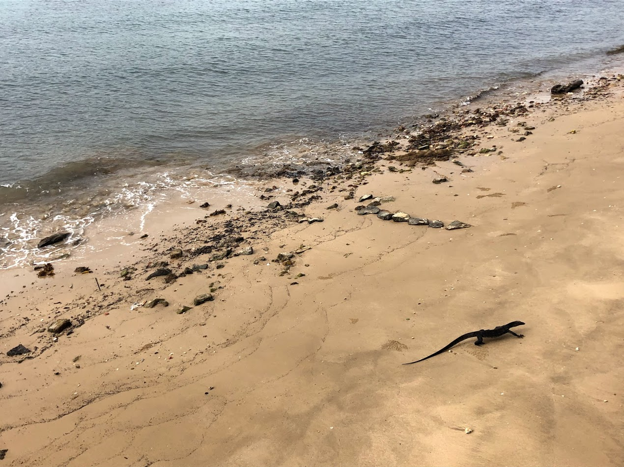 As we approached Labrador park, I told the girls if they quieted down we might see some animals. We only made it a few more feet before we saw a Malayan Water Monitor coming up from the shore.