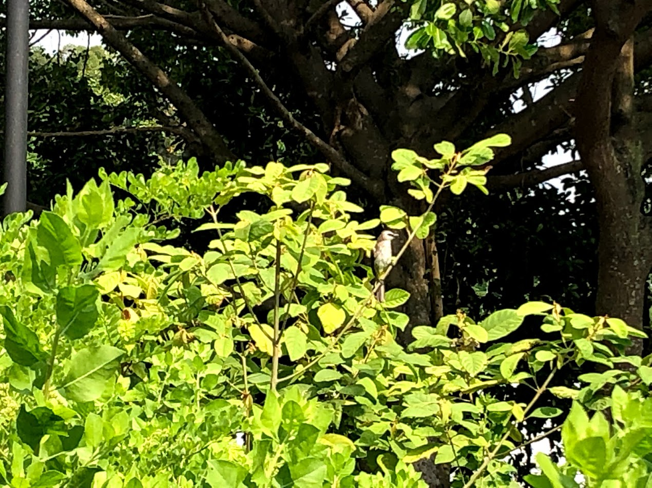 We watched the Plantain Squirrels with their feathered tails leap from tree to tree. We saw lots of Mynahs and other common birds, but we spotted a new bird too. It browny-gray with a white face and black mask. It's breast was white, but it's belly was creamy yellow. We're always on the look out for new species to find in our bird book. MsE's nature coach, mentioned that she is excellent at spotting the birds, and finds them where they other kids can't.