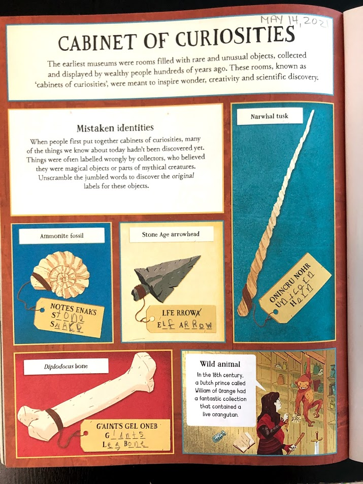We learned about how what we "know" can change. Scientists and archaeologists make theories based on what they know at the time. As they learn new information they change their theories again. Related to this, the girls completed some activities from "The Usborne Museum Activity Book". They loved guessing what the mistaken identities of the items below could have been.