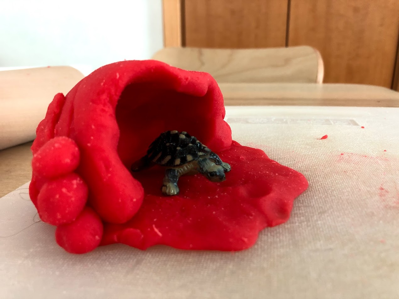 MsE had finally agreed to try out an instructor led class this month for the first time since Covid. It was cancelled a few days before she got to give it a try. One of MsE's at home art projects instead was a playdough turtle cave. She also played around with salt and watercolours; beads; loose parts; lots of colouring.