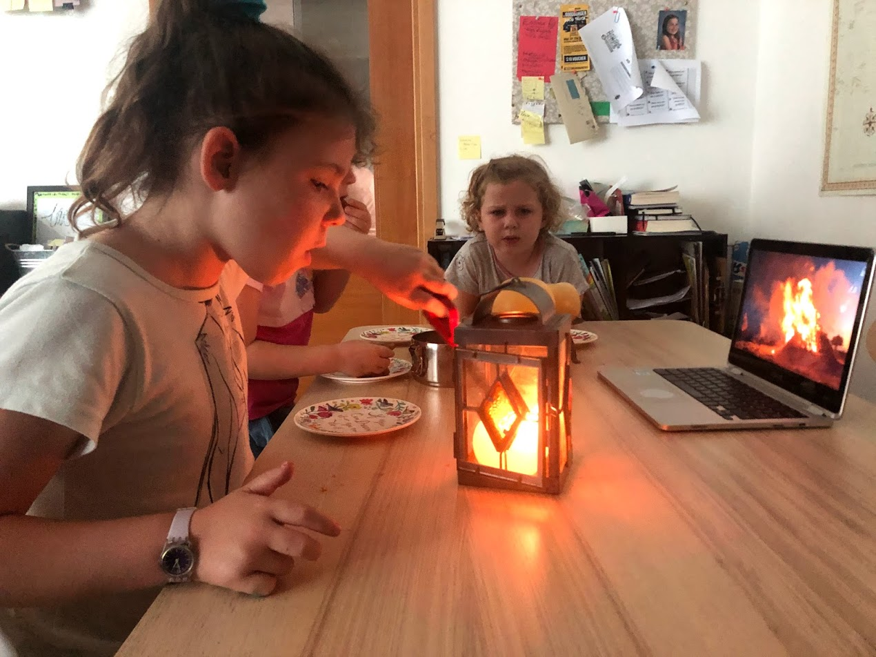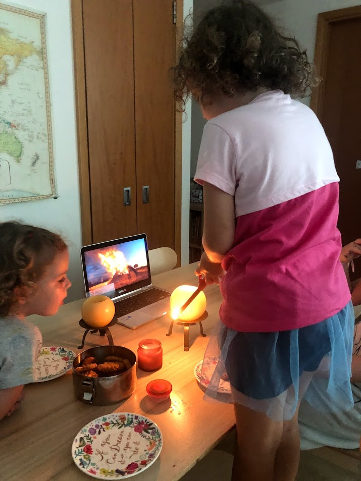 We celebrated the coming of Summer with the festival of Beltane by watching the lighting of the bonfire at Uisneach, Ireland online. MsI said, "It looks like a camp fire." Yes, but much bigger. Fires have been lit on this hill in the centre of Ireland for 1000's of years to celebrate Beltane. There was no public celebration due to Covid, just the keepers of the hill managing the fire and broadcasting it. MsE really liked that someone did a dance with fire. MsC liked that we lit our own candles to symbolize the fires lit in Ireland. It's hard to keep track of time in Singapore without any changing of the seasons, so these little celebrations help us keep track of what it's like back home.