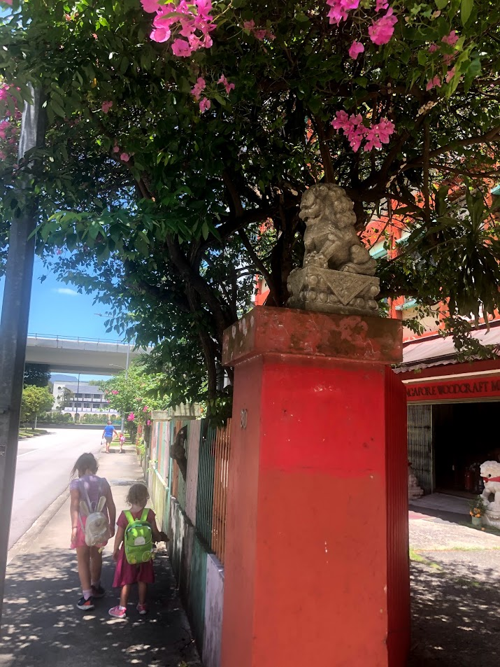 In stark contract to all these modern monuments, are the little statues we discovered recently in front of the Singapore Woodcraft Manufacturing building on a walk between Hort Park and the bus stop.