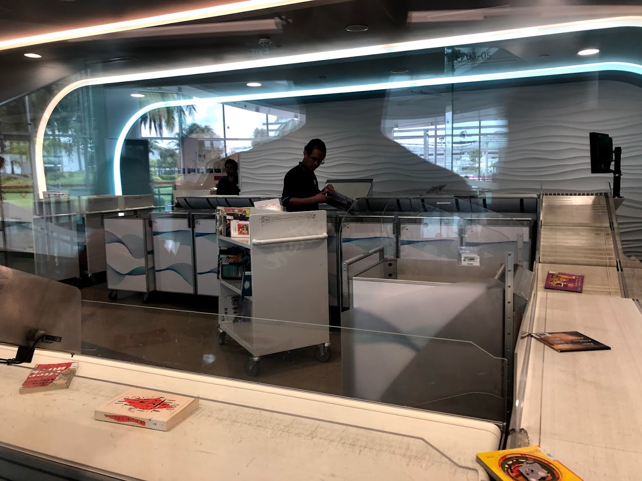 Our Library is automated. There isn't even a check out desk, just self-check out.