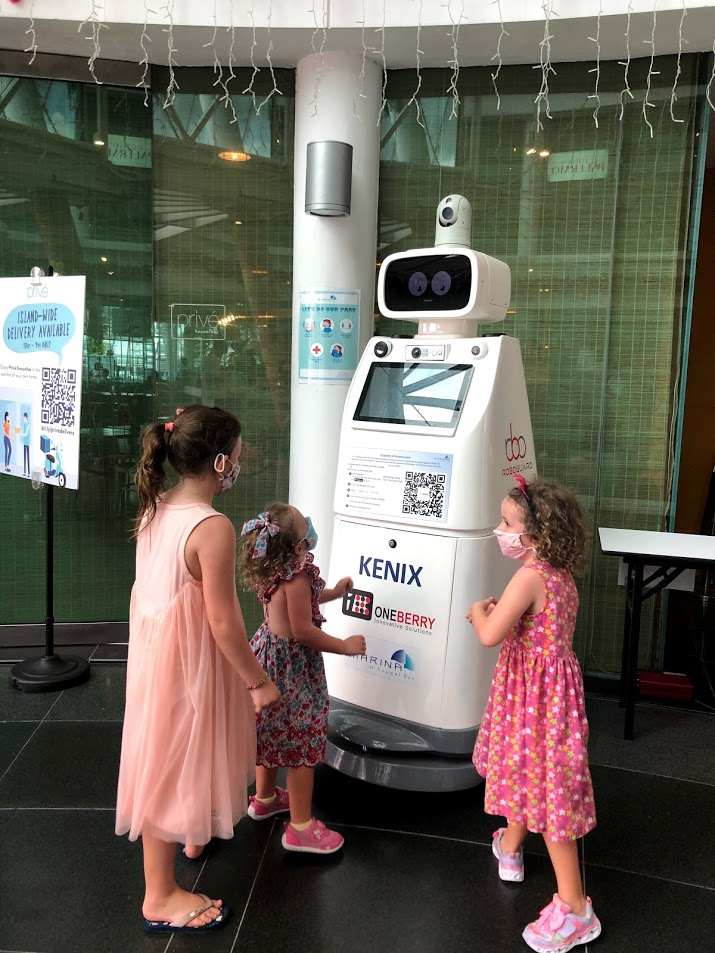 As we were leaving the girls had a chat with Kenix, the robot. This robot gives directions and helps people with services in the marina. He's probably the 4th robot we know personally in Singapore.