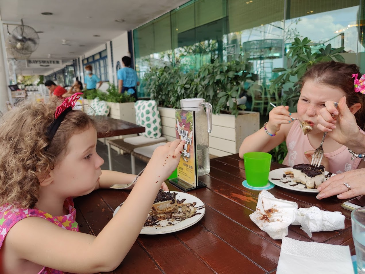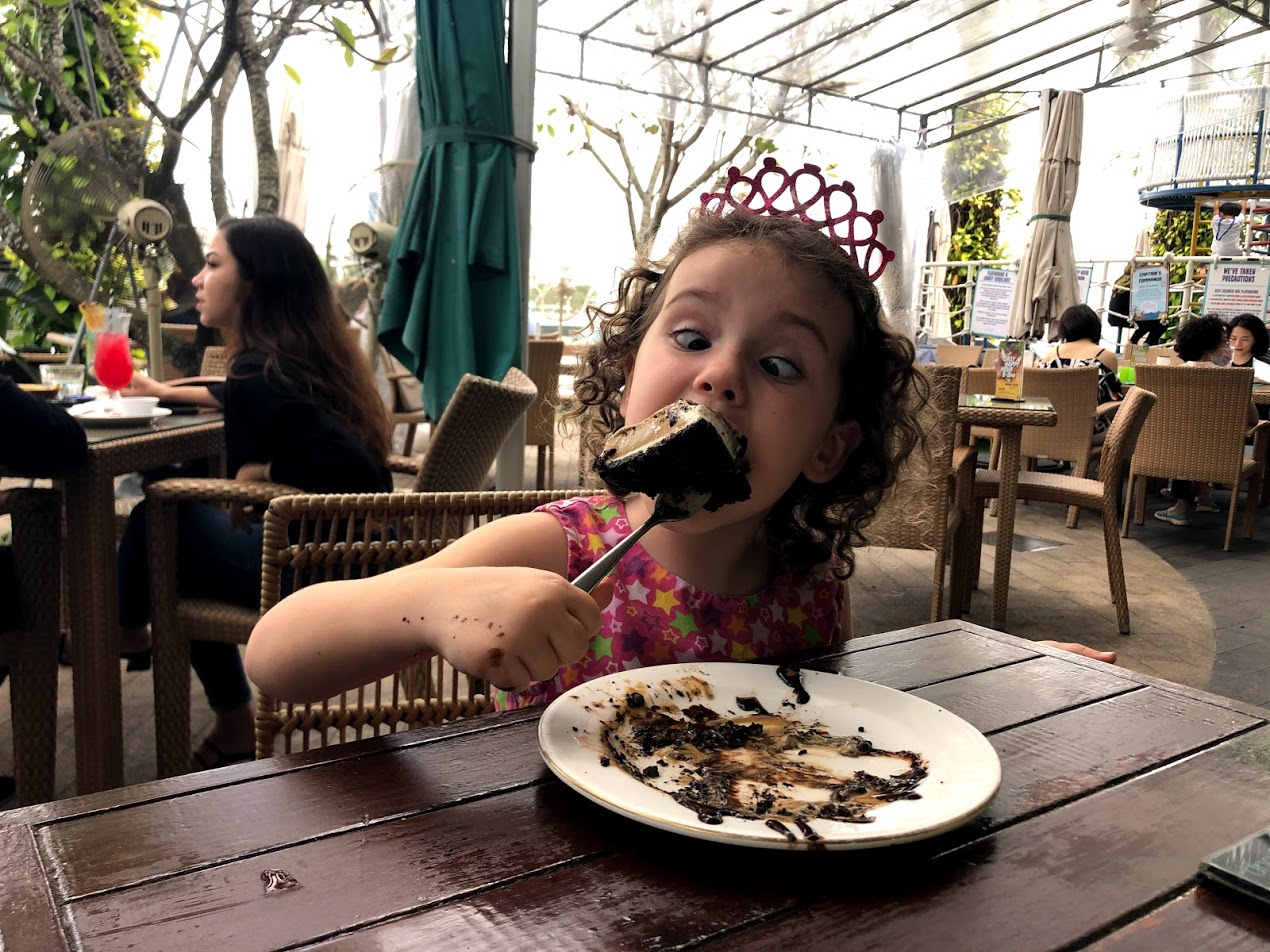 Actually I had myself a Singapore Sling, because there were no gluten-free desserts. The girls and Jonathan ordered the vegan Oreo Ice cream Cake. It's Jonathan's favorite dessert in Singapore. They ate all the cake.