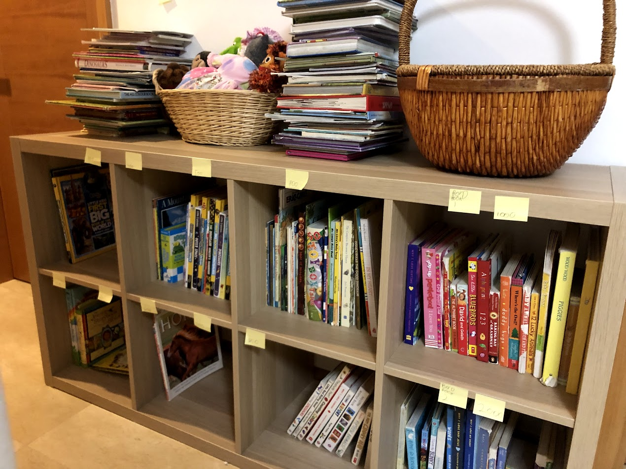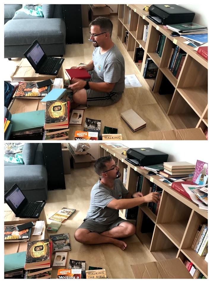 We brought a lot of books to Singapore. We got rid of a lot of books before we left too. I'd guess there were about 8 boxes of just books shipped, likely more. We bought a bunch of IKEA waist height shelving here, and our black IKEA cube desk was shipped to Singapore by sea. That's 48 cubes. Although I need a few for board games, paper and our homeschooling folders.
