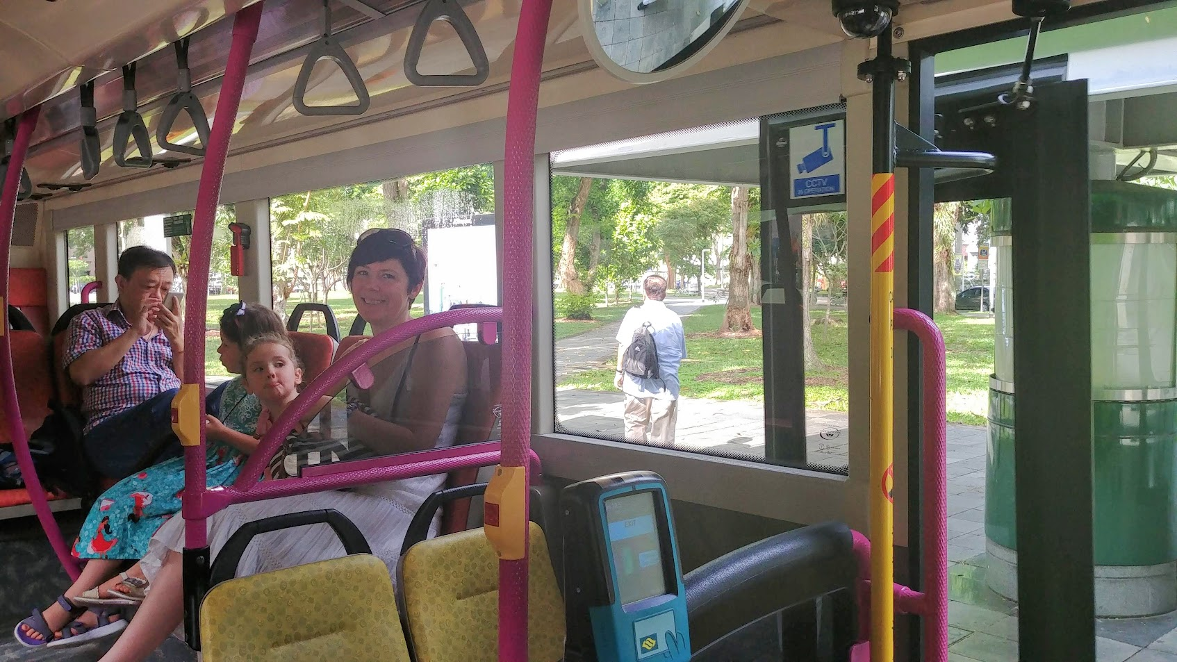 Figuring out the bus route did not go well. First I couldn’t fit the umbrella stroller through the doorway. There are bars to let two rows of people on the bus at once and the wheels were twisted making it too wide. Then you have to tap your transportation cards which are the same ones that you use on the MRT. Feeling frazzled I dropped my wallet exploding money, coins, credit cards everywhere. Someone stopped and helped me pick it all up while the whole bus waited. Jonathan was already down the bus with the 2 older kids. Finally settled in, we realized the bus was heading in the opposite direction. We got off at the next stop and started again on the other side of the street.