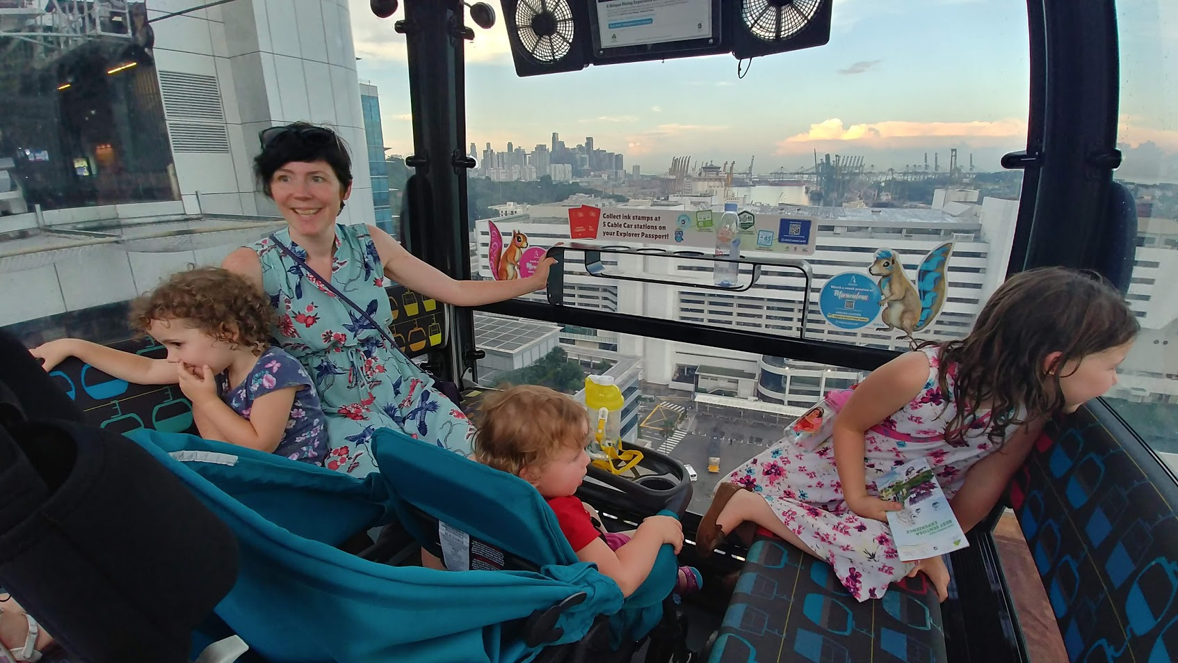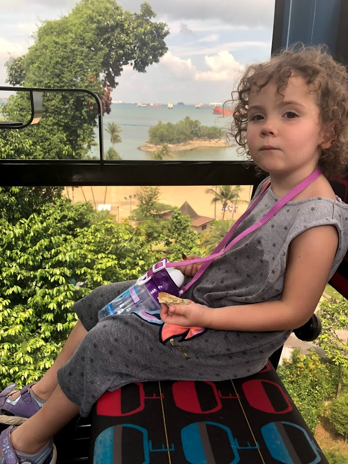 There's a little resort island right across from our new place. It's full of restaurants, hotels, Universal Studios, water slides, a splash park, an aquarium, golf courses, to name a few, plus nature spaces like walking trails and beaches. It's connected to Singapore by car, light rail train, and our favorite Cable Car (or what I would call Gondolas). Cable car is also our closest access point so you can imagine what we've been doing a lot of. For the cost of 2 trips we got the annual family pass. The views are spectacular.