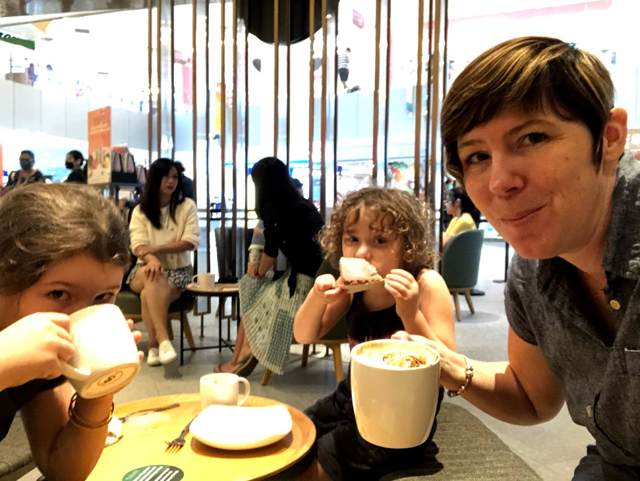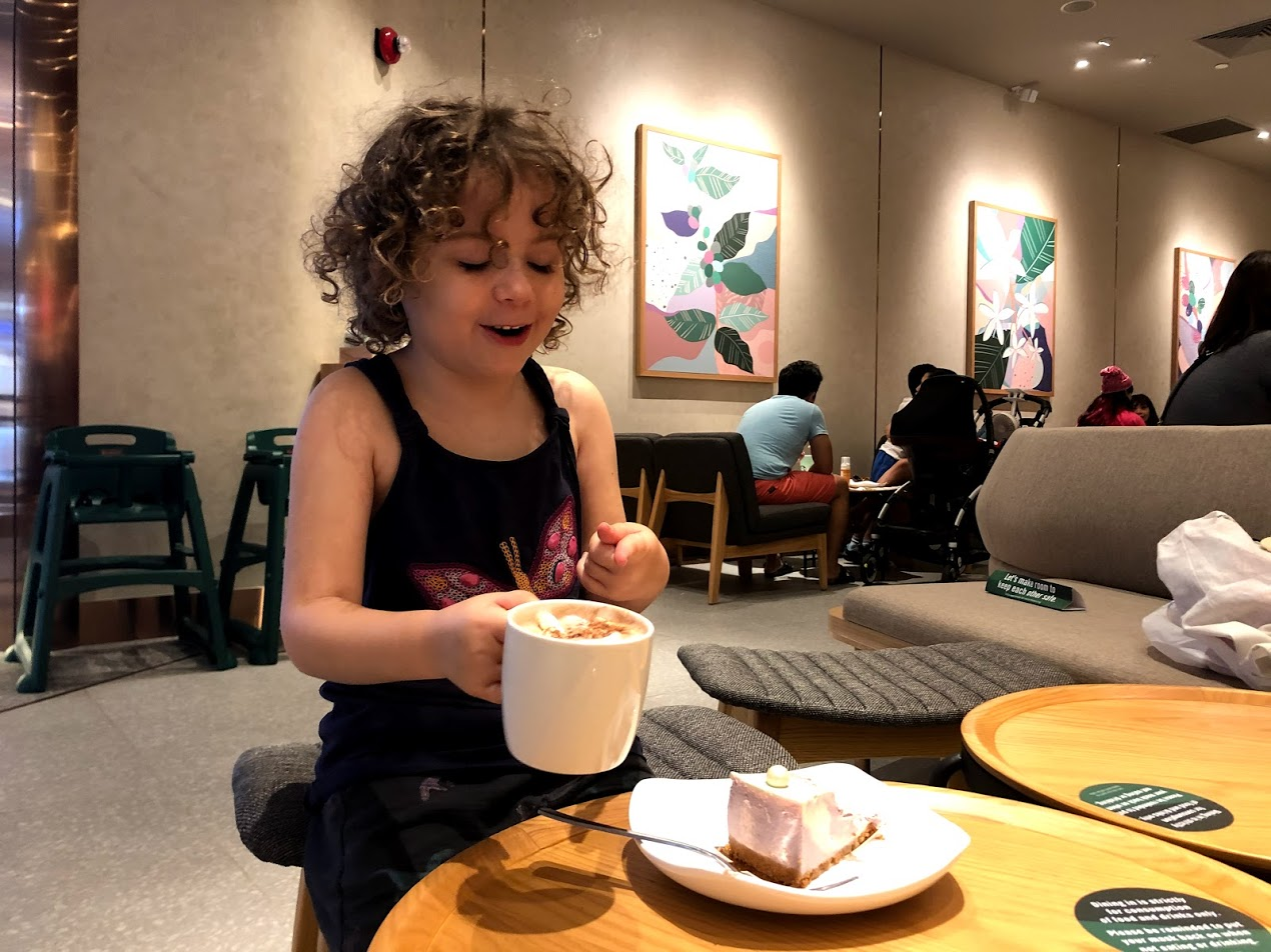 - Photographs and Hot Chocolate in the Mall. MsE was heard to say "This is the best lunch ever!" - hot chocolate and mermaid cake.