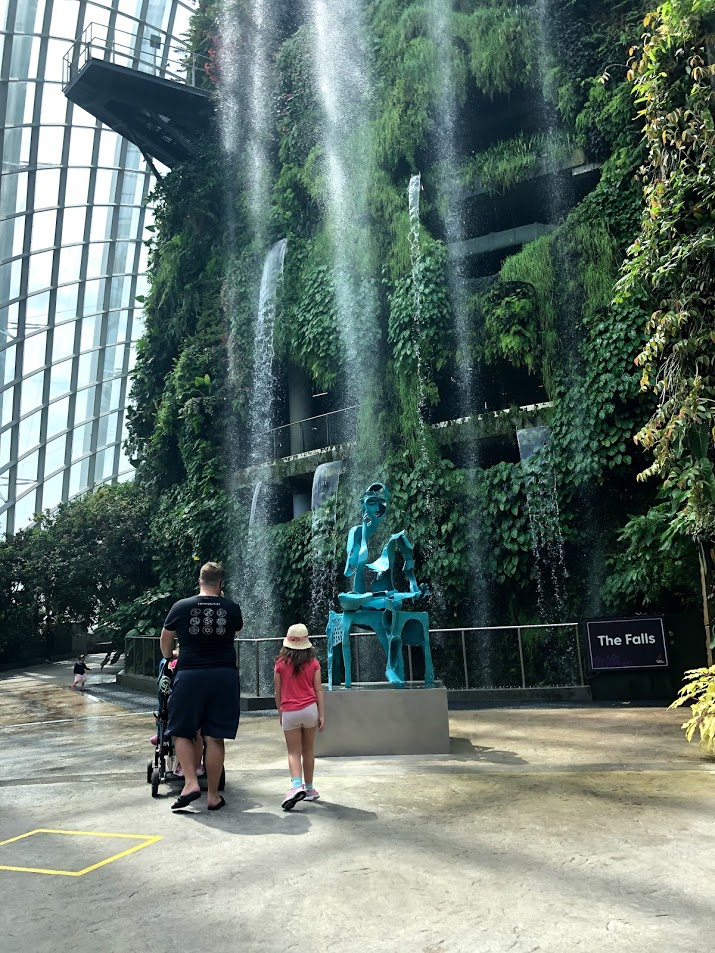 You're greeted cool aircon and the mist of a giant waterfall as you enter the dome and then proceed to walk gradually up the spiral pathway all the way to the very top of the waterfall. As you go you pass the different climate zones of a tall mountain in South East Asia. We found this pretty interesting as we're very unlikely to hike any real mountains in Asia.