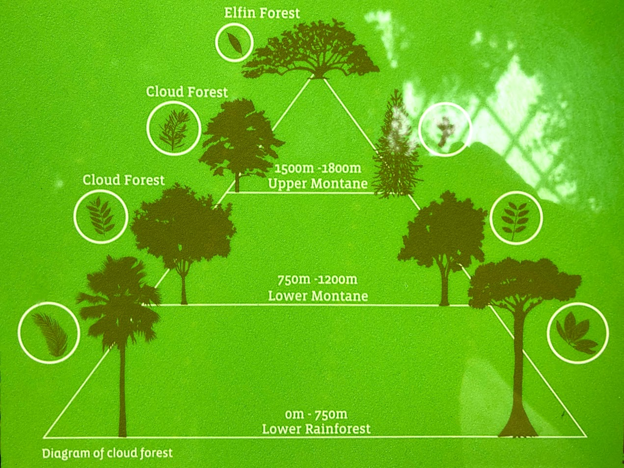 As we went higher in the Dome, it got cooler and the plants and trees got shorter and smaller just like they do at high elevations. Everything was covered in moss at the top. I didn't didn't get a picture of the curving arial walkway that circles down the outside of the mountain for the way down.