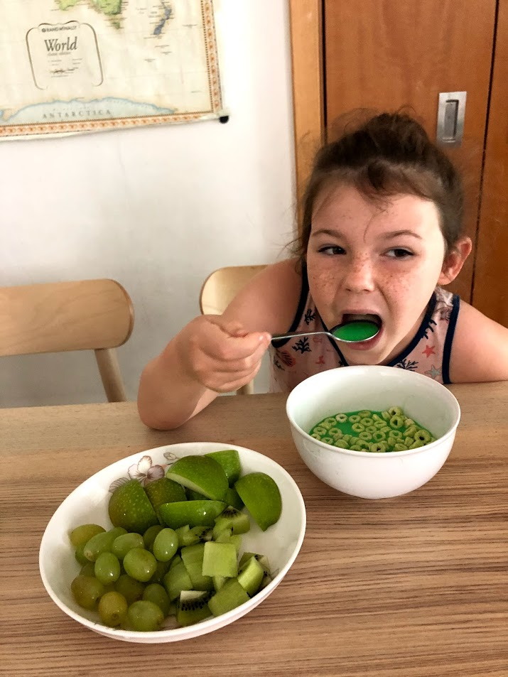 The girls wanted to do it again the next morning. Instead we talked about the importance of eating the whole rainbow.