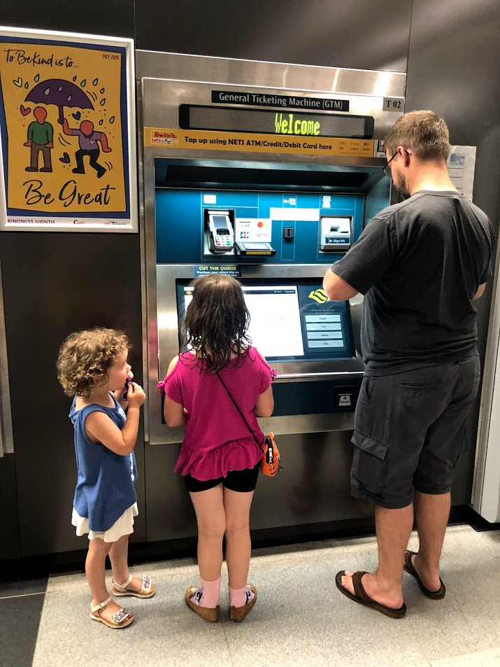 Our goal of the day was to figure out Mass Rail Transit (MRT) for the kids. Each person taps their prepaid card when they enter and exit the MRT. Payment is automatically deducted based on how many stops you have traveled.
