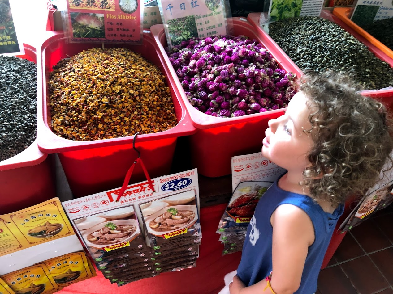 The kids loved tapping their cards today as we made good use of the MRT. We traveled to Chinatown, where Ms.C bought a folding fan. She fanned herself all day from that point on trying to keep cool.