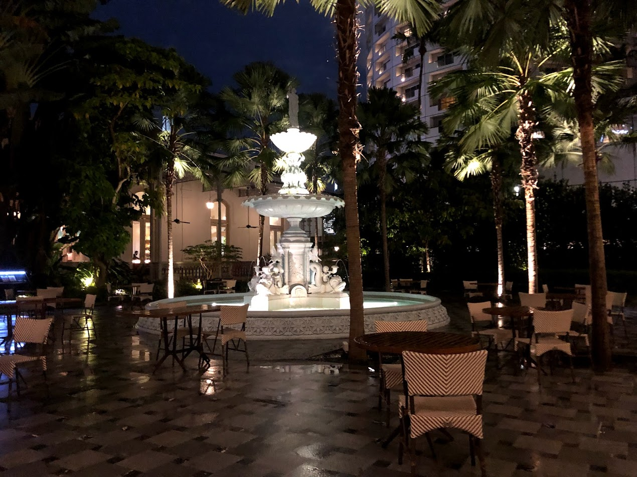 The restaurants are on the Left side of the hotel, so we exited the Lobby and moved through the more public area. We found this lovely courtyard, but it had just finished raining so we stayed under the covered walkways.