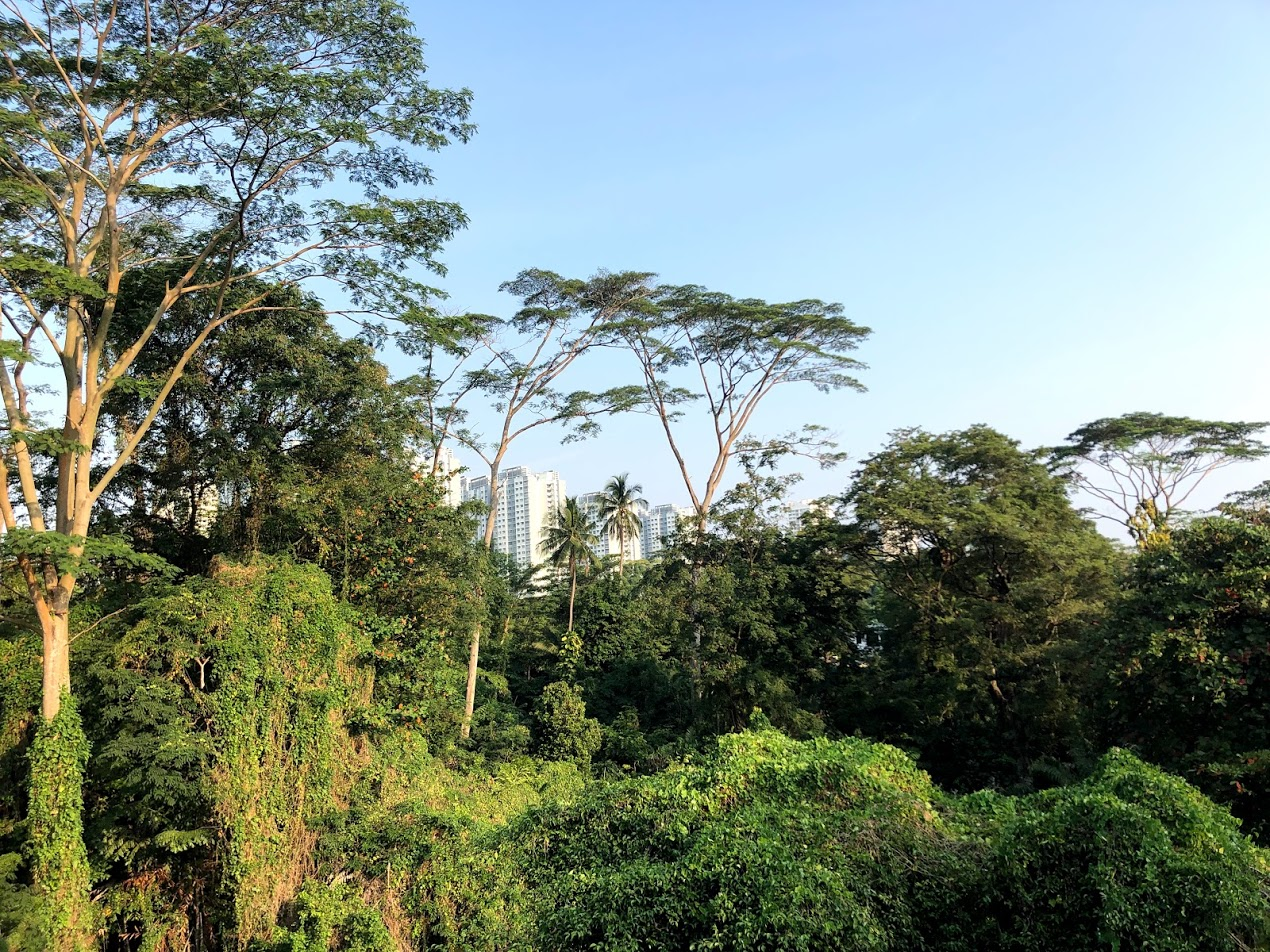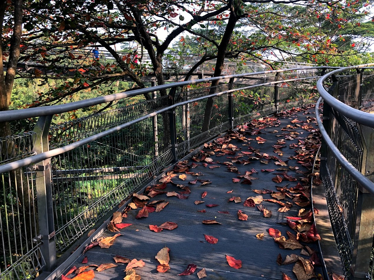 I thought found Autumn for a moment and was a little confused, as Singapore doesn't have the four seasons. Being on the Equator it's basically hot and humid all year here. Turns out the Ketapang Tree's leaves turn red and fall off in the dry season. This isn't due to a lack of sunlight like true autumn leaves. I nostalgically crunched as many leaves as I could with my feet, and Ms.E and I talked about Canada's Fall.
