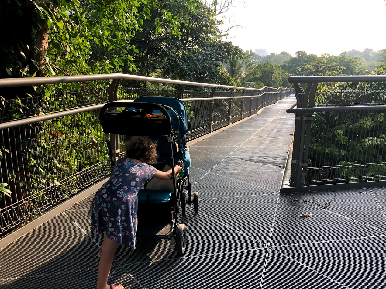 We left Ms.C to enjoy herself and headed out for a walk. There wasn't quite enough time for the playground, so we headed for the opposite side of the street and the Southern Ridges. It's a 10 km trail of linked metal bridges high in the tree tops. We made it 0.3 km, before we ran out of time and had to head back for Ms.C.