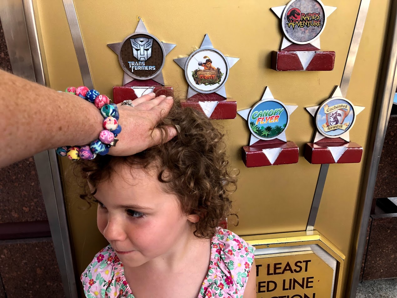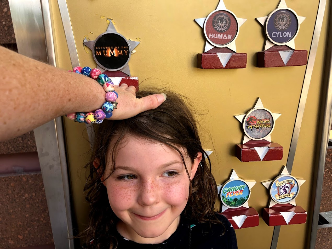 Ms.C is tall enough for everything except the hugest roller coaster, Battlestar Galactica. Wear your tall shoes Ms.C! Jonathan and I love the TV series Battlestar Galactica, so we're have to go on that at some point without any kids. We can see people going upside down on it when we're riding the cable cars. Jonathan's not a huge fan of roller coasters so we'll see how that goes.
