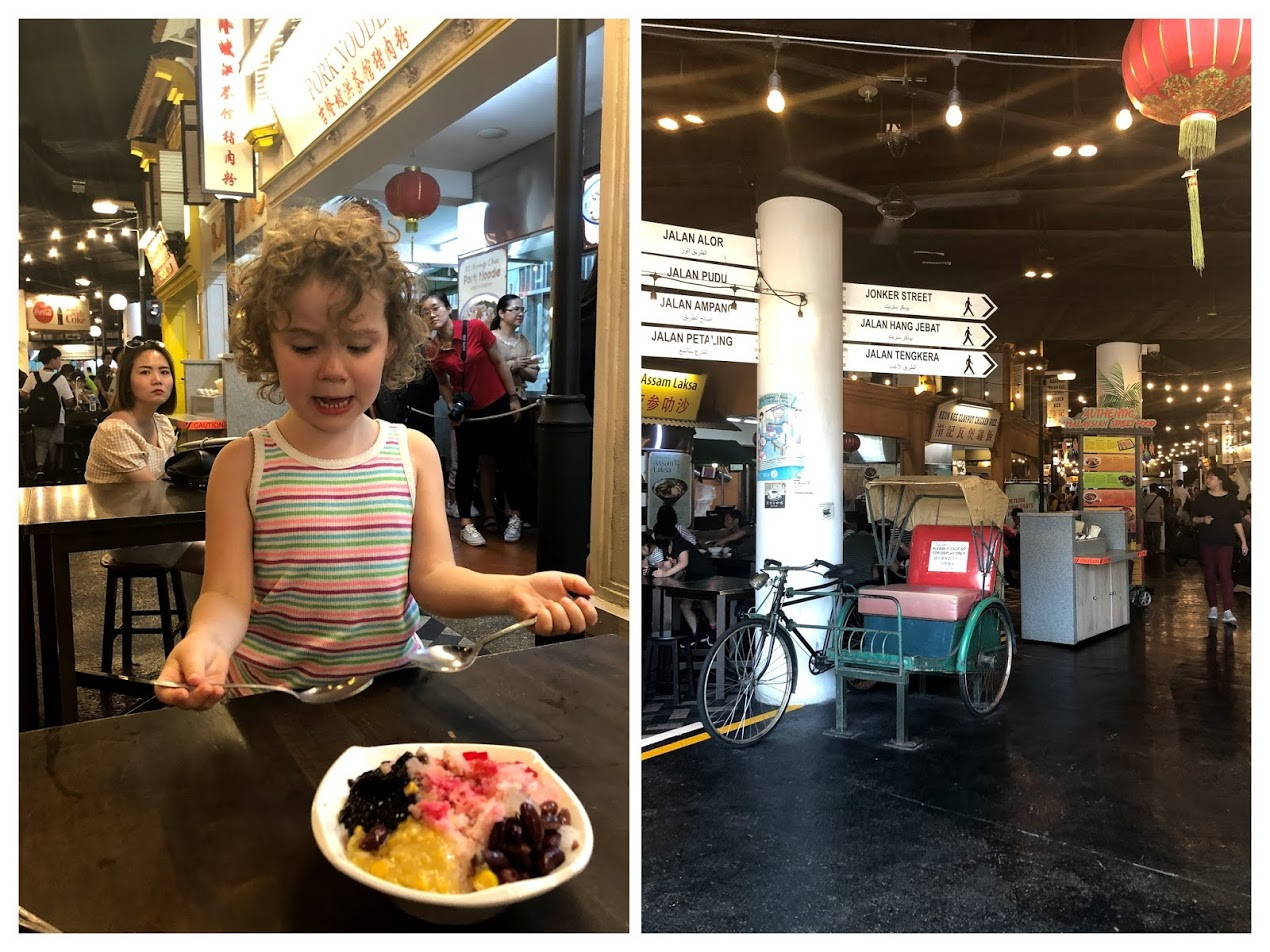 There's a themed hawker centre (food court) right beside the entrance to Universal Studios. It's called Malaysia Food Street. The food was decent, but a bit expensive in comparison to a regular hawker centre. The scene was super cool though - as you would expect from Universal Studios. Certainly a reasonably priced food option for Sentosa, probably a better option than eating inside Universal Studio too. We ate chicken and beef Satay and a shared an iced Kachang.