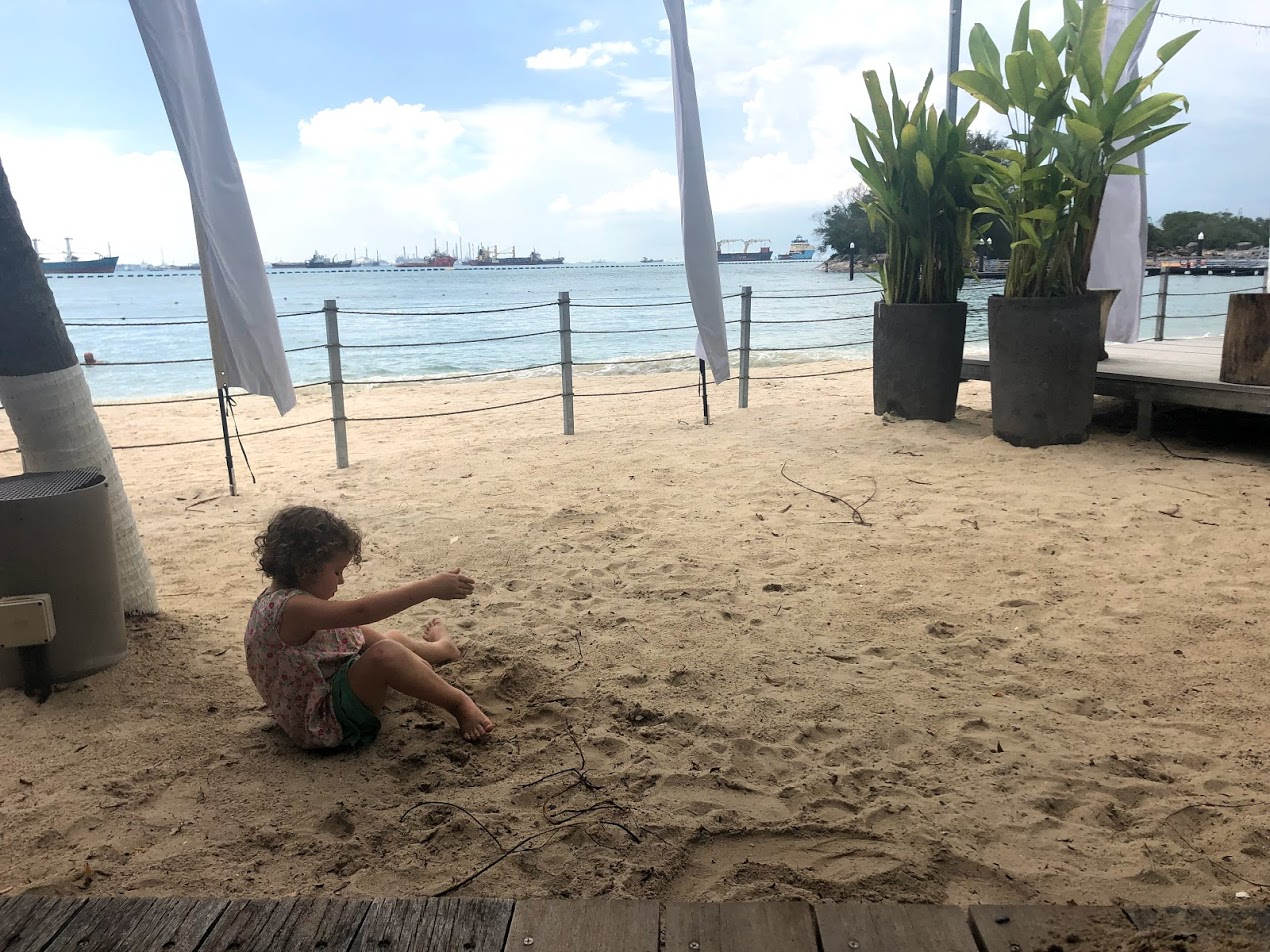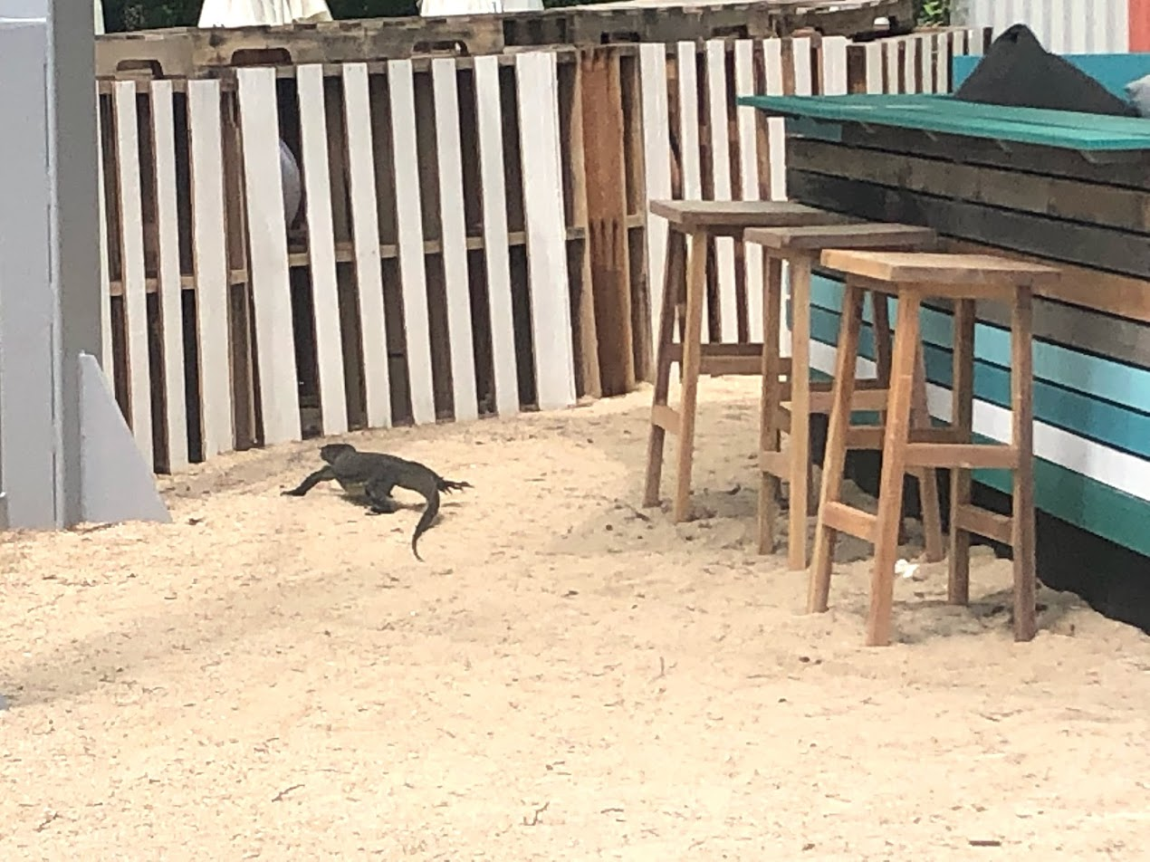 The restaurant found a beach ball for MsI to toss around. When she lost it under the deck we joked that we couldn't go under to get it in case there was a big monitor lizard under there. 10 minutes later an actual monitor lizard did crawl out from under there!