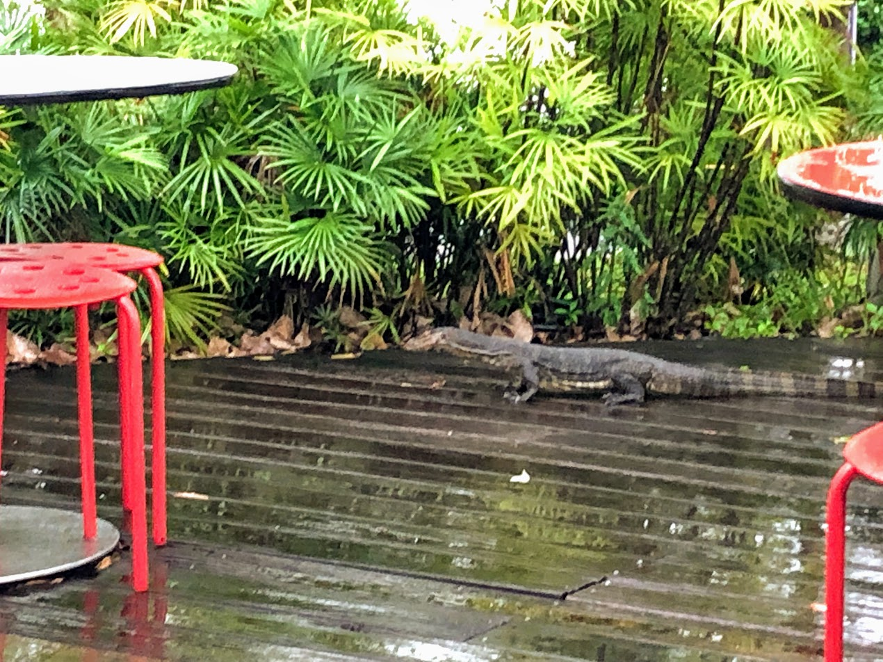 Above is what might be the coolest thing Ms.E has spotted so far. I think it's a Malayan Water Monitor. They're the most common lizard in Singapore and can grow up to 3 feet long. I think this one was about 2.5 feet. It was just strolling across a patio while we were waiting for dinner at Garden's by the Bay, and Ms. E very casually pointed it out to me.