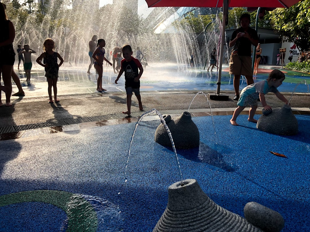 We found the group under the large covered tiered seating area. All the kids started out at the Splash Pad, but the bigger kids relocated to the playground behind for some group games not too long after. Thankfully the little ones, didn't seem to realize there was a large playground to roam through hidden behind the parents' seating. I hardly saw MsC for the next 2 hours, unless I went looking specifically for her or she was running past.