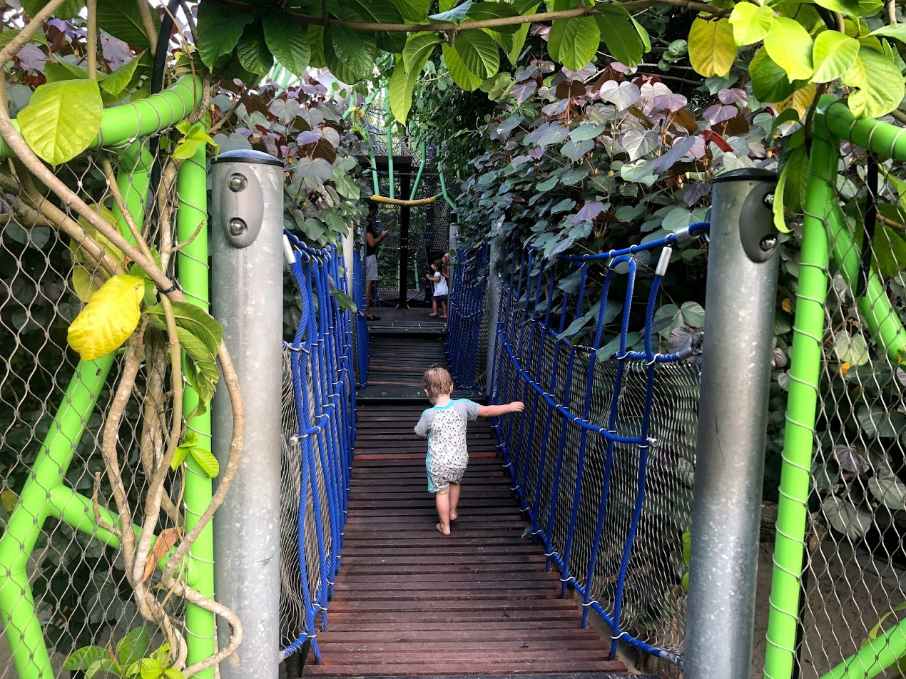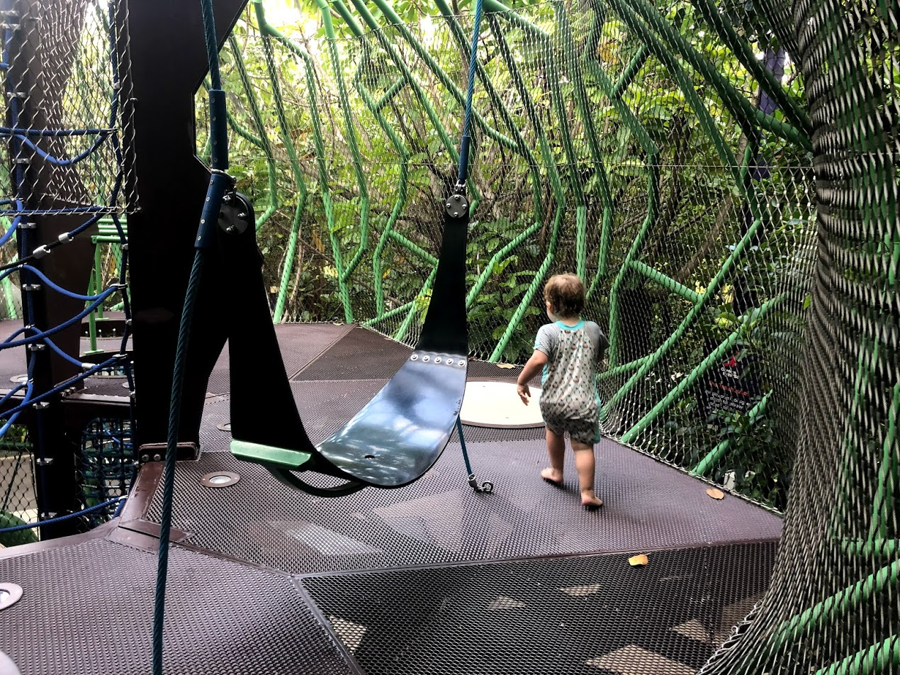 Eventually MsE followed the big kids into the playground and then I hung out there for a bit. It was very lovely playground. It was shady and surrounded by trees. You climbed various ways up about 3 levels and there were slides to get down. The whole bottom of the playground was sand, which was nice on all those bare feet from playing in the splash pad.