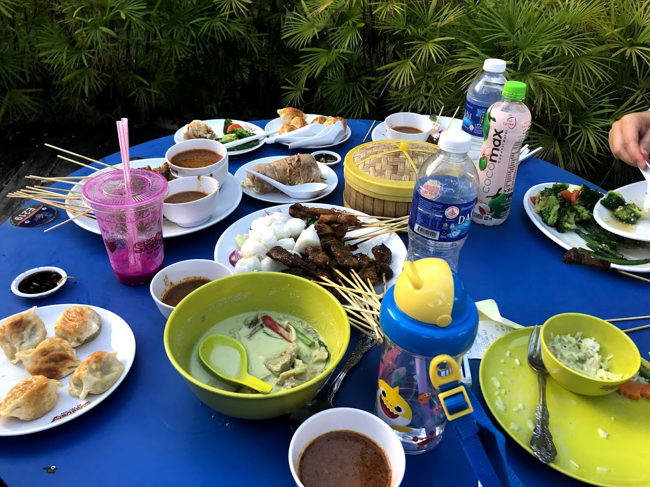 Garden's By the Bay has our favorite Hawker Centre, so we headed there for dinner. 2 other home school families joined us. Jonathan met us there too, so there were 4 adults at one table and 8 kids at the other. It was fun chatting with the Moms at the Splash Park, but my favorite part was talking with these 2 Moms over fantastic food. They're both expats who have been living in Singapore for quite a while now.