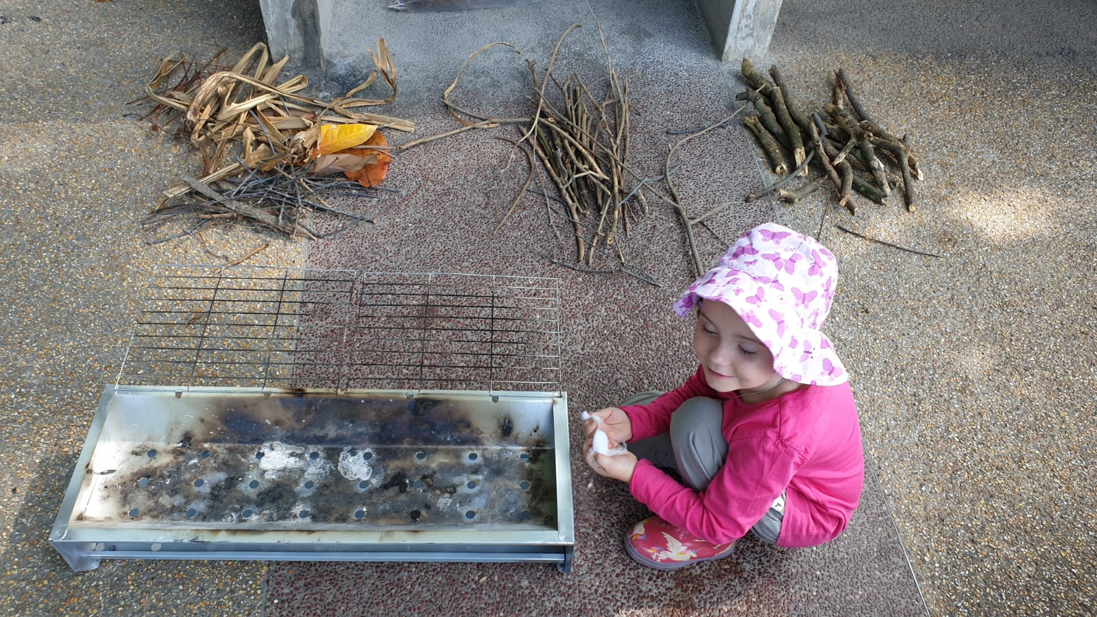 But this week the kids were directed to only gathered firewood in their Treasure Buckets. They collected big and little pieces, sticks and leaves, and grasses too. They sorted their finds by size as a group. They talked about what is needed to make a fire burn and what makes good firewood. They practiced their fire safety skills.