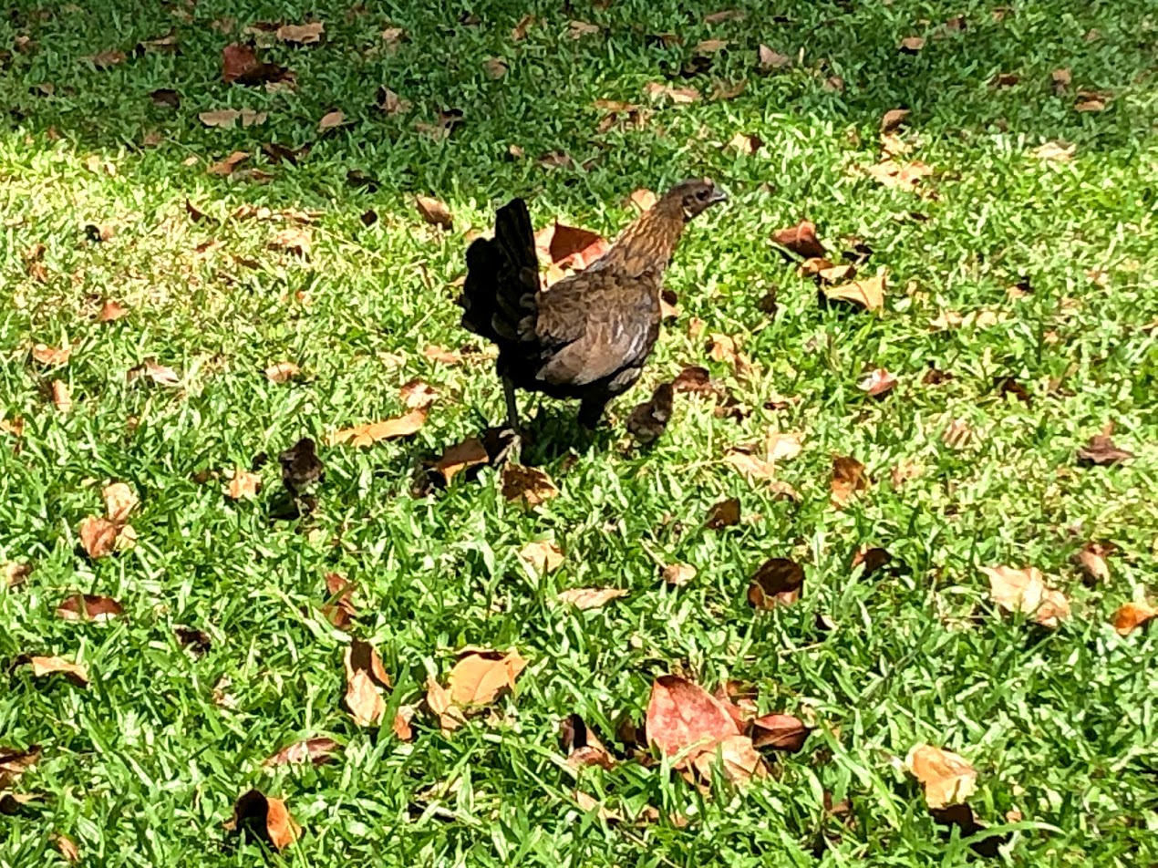 As usual, we spotted lots of birds on way out of the park, including the resident Peacock and all the Jungle Fowl. The Jungle Fowl had babies with them again too.