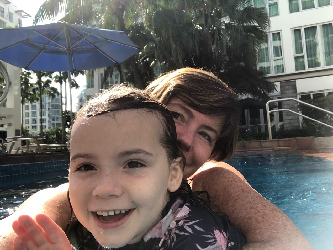 MsE was the only kid at the pools; but we saw some friends playing at the Playground beside the pool.
