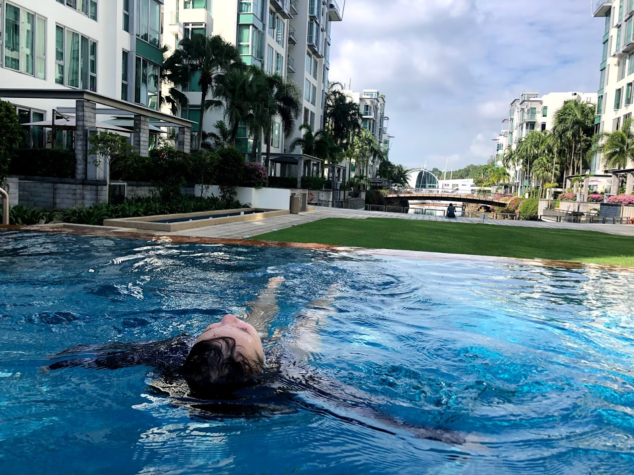 After my coffee we tried to figure out how to lounge with both of us on the floatie without falling off. Once we had it figured out, we waited till there were no lap swimmers in the Olympic sized swimming pool and then let the wind blow us back and forth for a while.