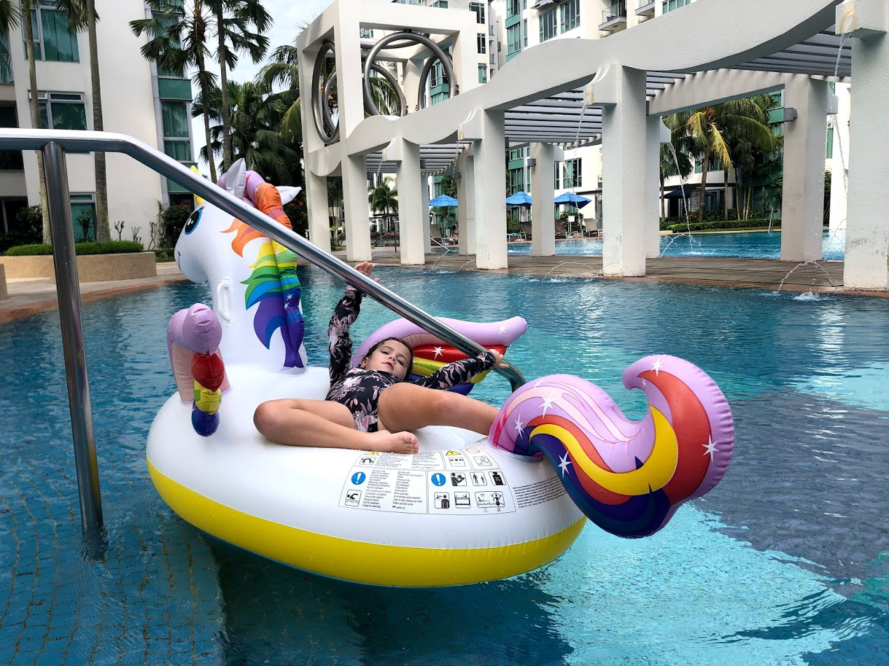 She wanted to float on her unicorn floatie without anyone begging her for a turn the whole time. She changed from her pajamas to her bathing suit and I took my coffee down the the pool to drink from a lawn chair.
