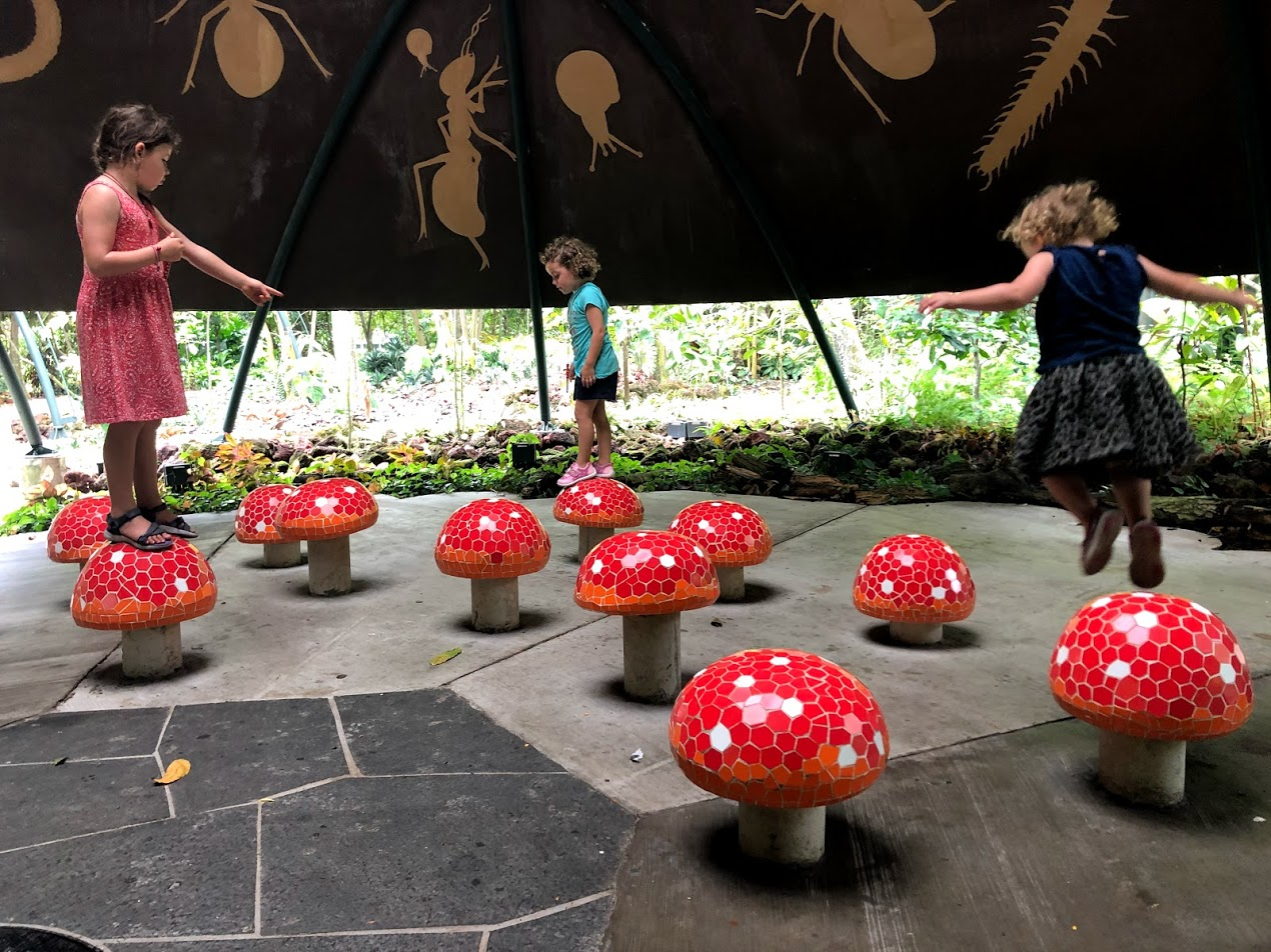 We got lunch at the Hawker Centre "Satay by the Bay" and enjoyed it so much we had to go back and order more satay. After lunch, we headed down a new path and found a shady dome filled with red toadstools.