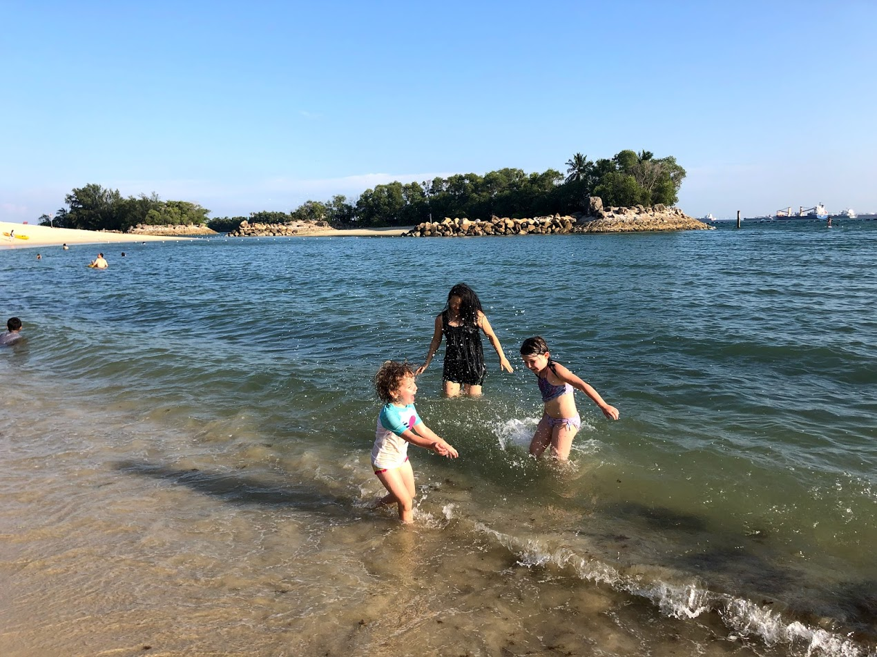 We're learning to do things as the day starts to cool off a bit, so we headed to the beach at 4:30 pm with Ms.C's new friend and her Mom. They brought along their Helper. That was a bit of an eye opener as to what life could be like.