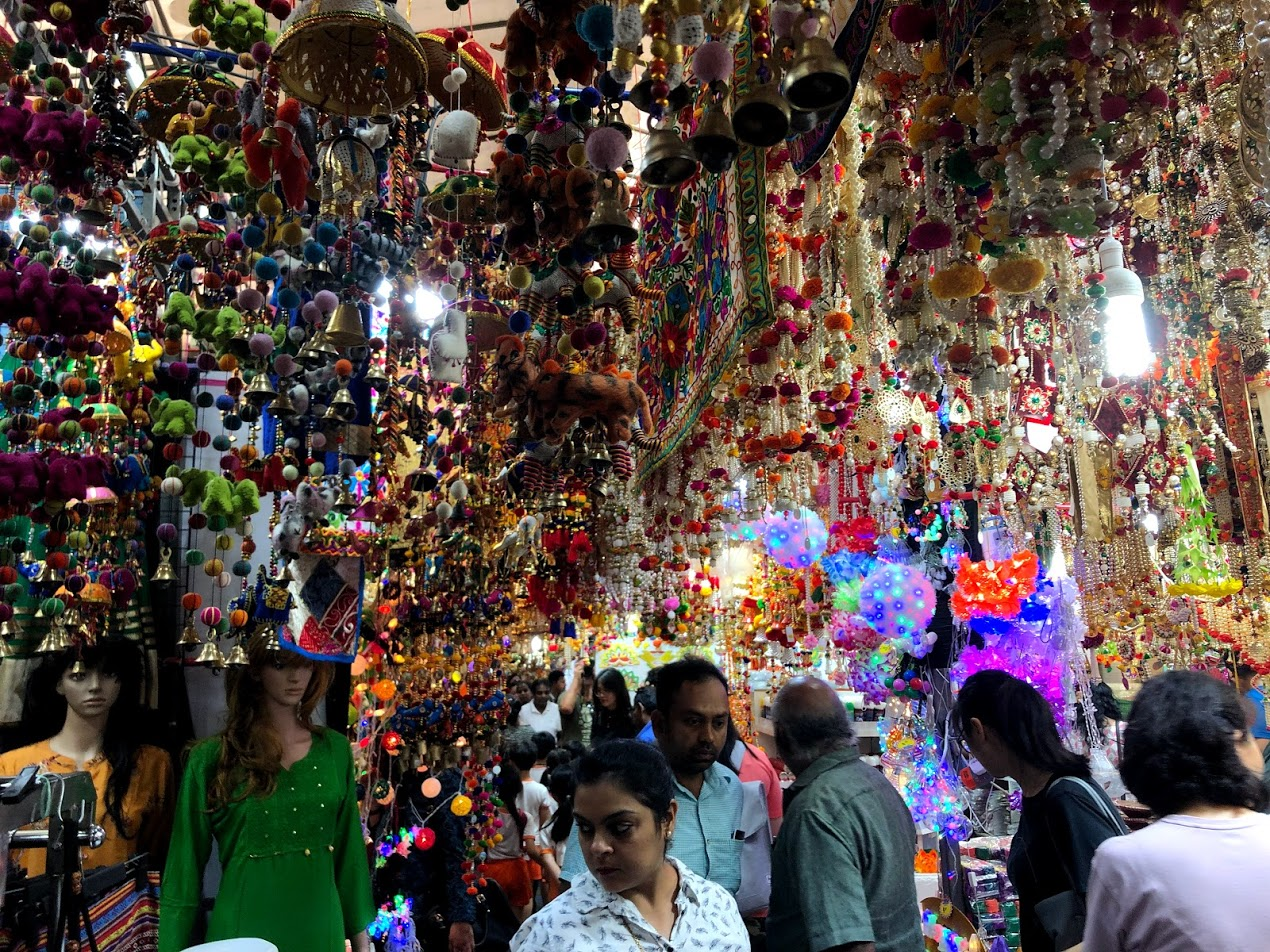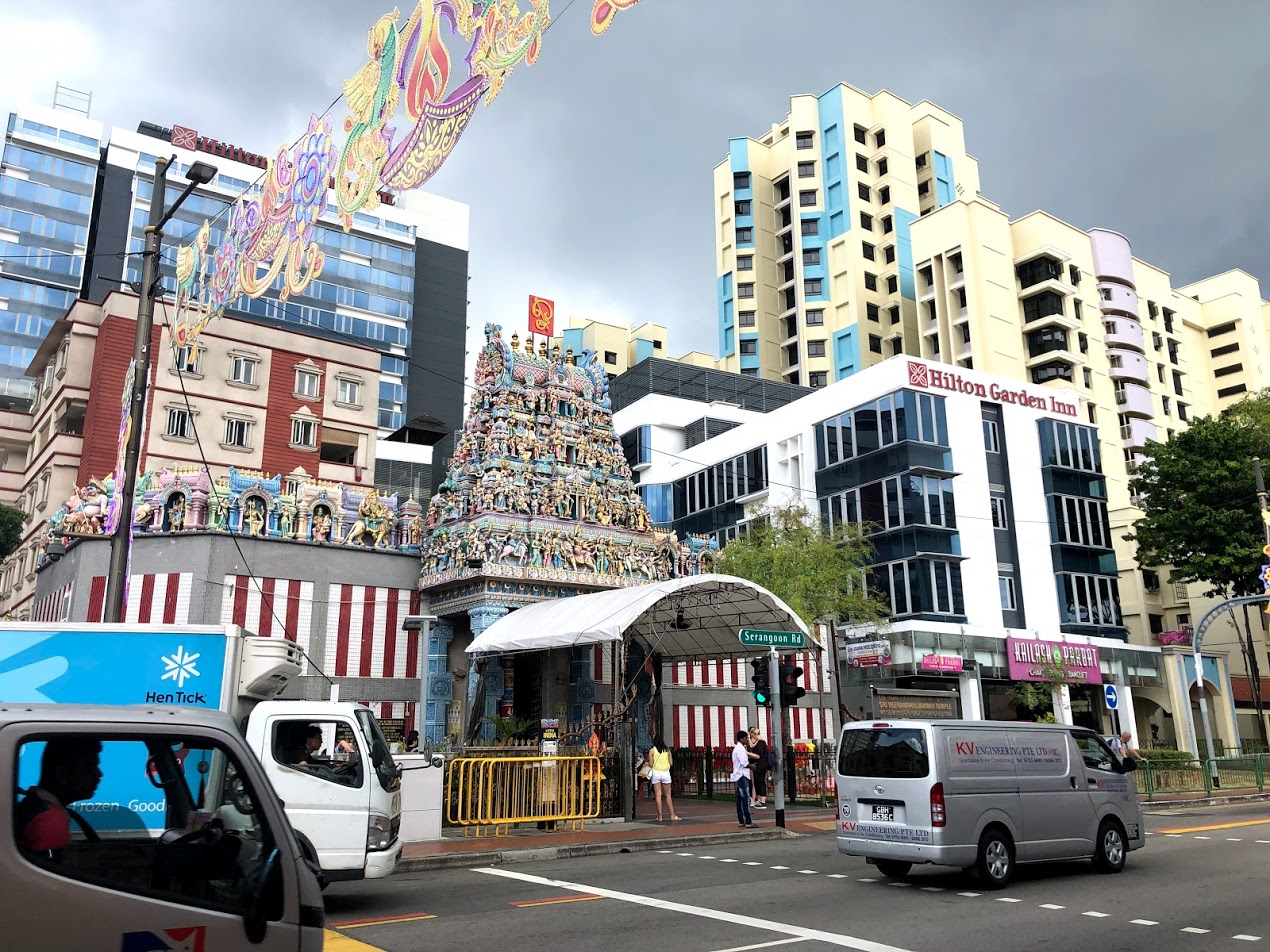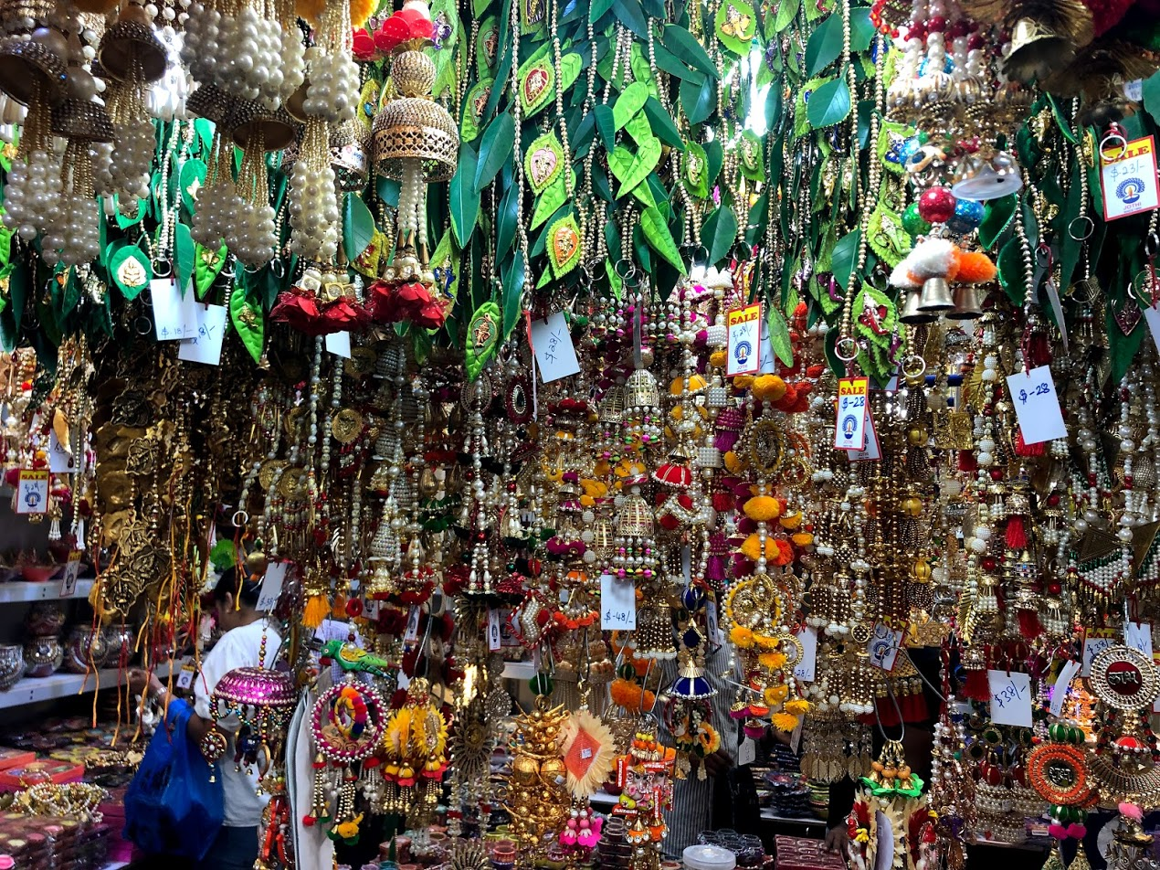 We noticed that even the MRT station had Deepvali decorations. The busy main street of Little India - Serangoon Road - had a large decorative arch over the road and smaller bright arches down the road as far as we could see, and we walked about 15 minutes down the road from the first arch.