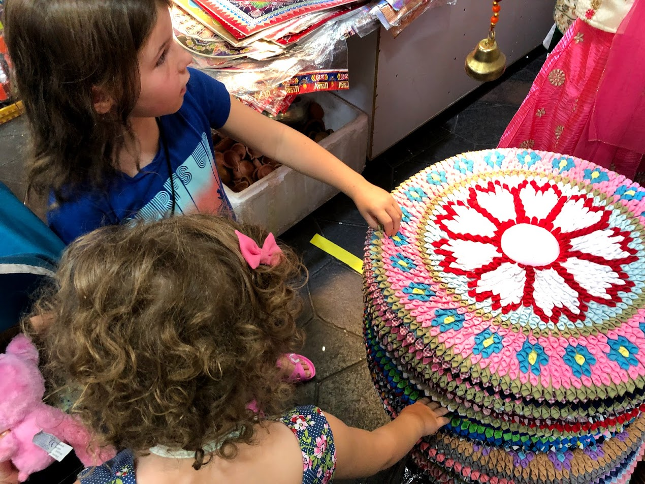 MsI found the temple "a little scary" at first. MsE was eyes wide with her fingers in her mouth. The kids were quiet and we tried to stay out of the way as we wandered through. It was pretty crowded both with tourists and devotees.