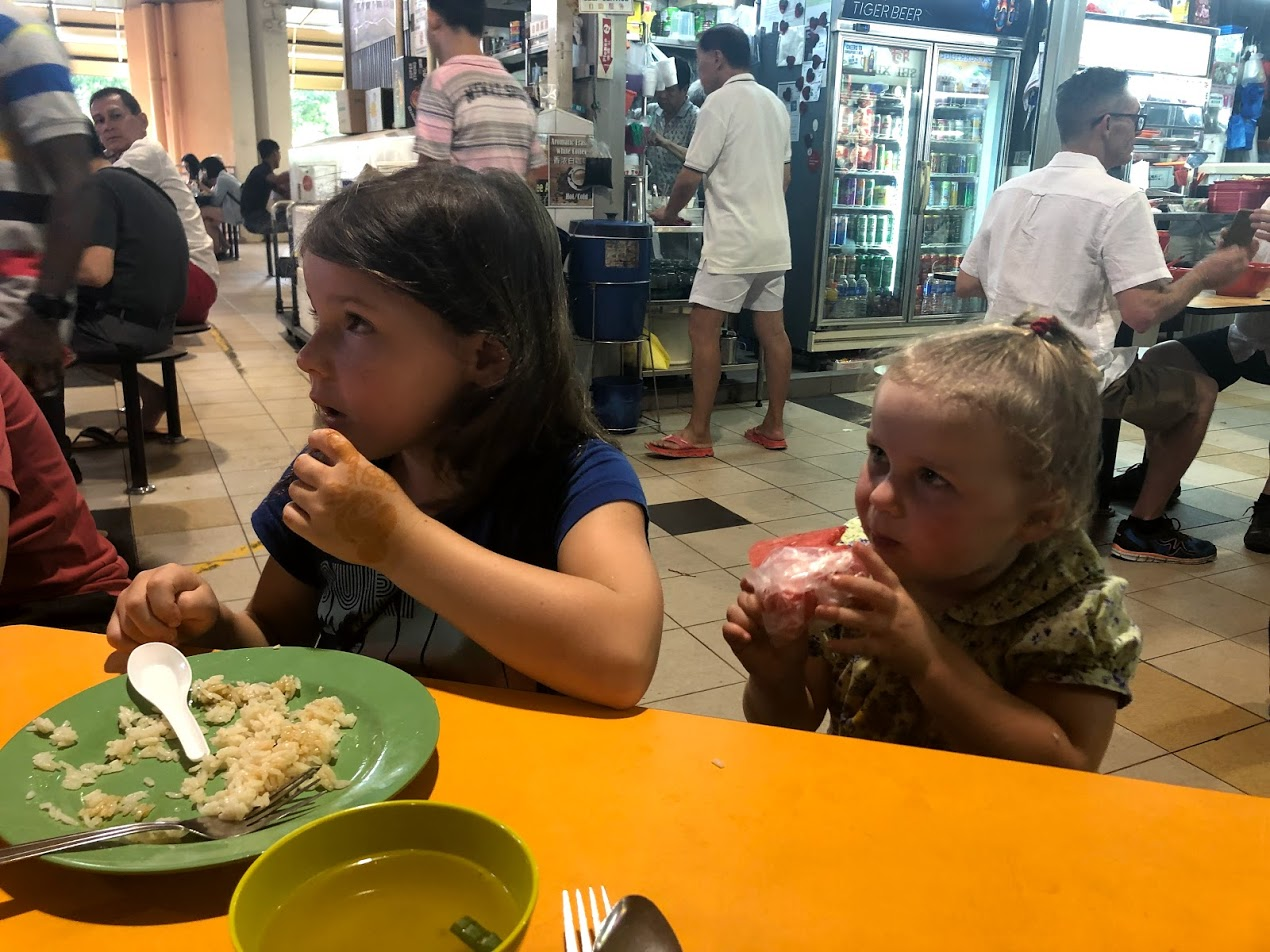 We got caught in the rain after that and headed to the Hawker Centre for lunch. I don't do hawker centres alone with the kids very often. Buying food from separate stalls, pushing a huge stroller, carrying trays of boiling hot food, trying to snag a table for 4, people everywhere, keeping track of the 3 kids, one of mine begging for a treat while the other is crying they're hungry and don't know what to eat - and just me.