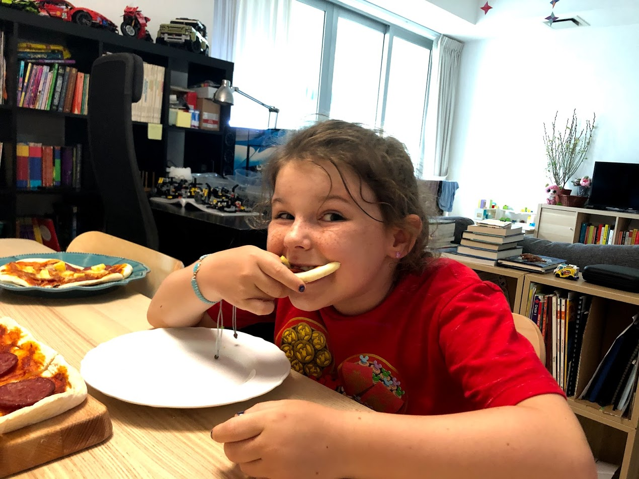The girls wore red to bed so that the monster Nian would be afraid of them and not eat them if he came, because we were not going to stay up all night to scare him away. We ate homemade pizza. We read our favorite Lunar New Year story: The Nian Monster by Andrea Wang. The Nian monster comes to modern day Shanghai and we learn about new year traditions, the Nian myth and also Shanghai landmarks, while the little girl, Xingling, outsmarts the monster for another year.