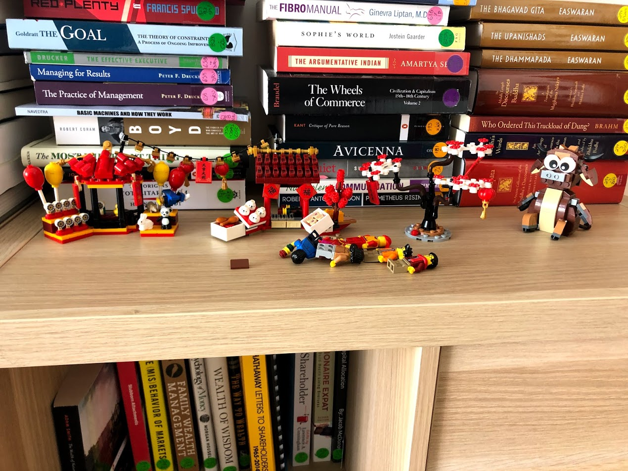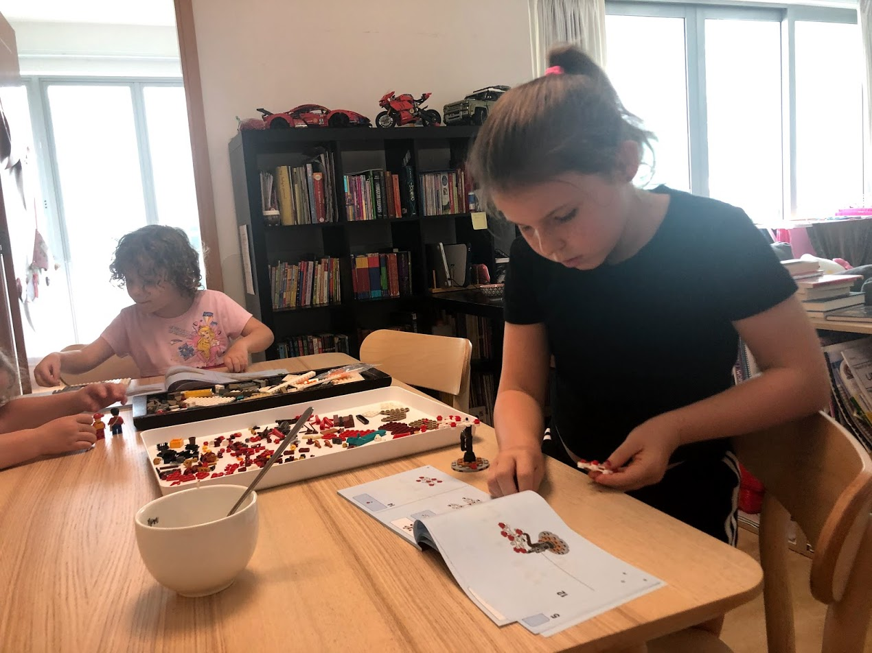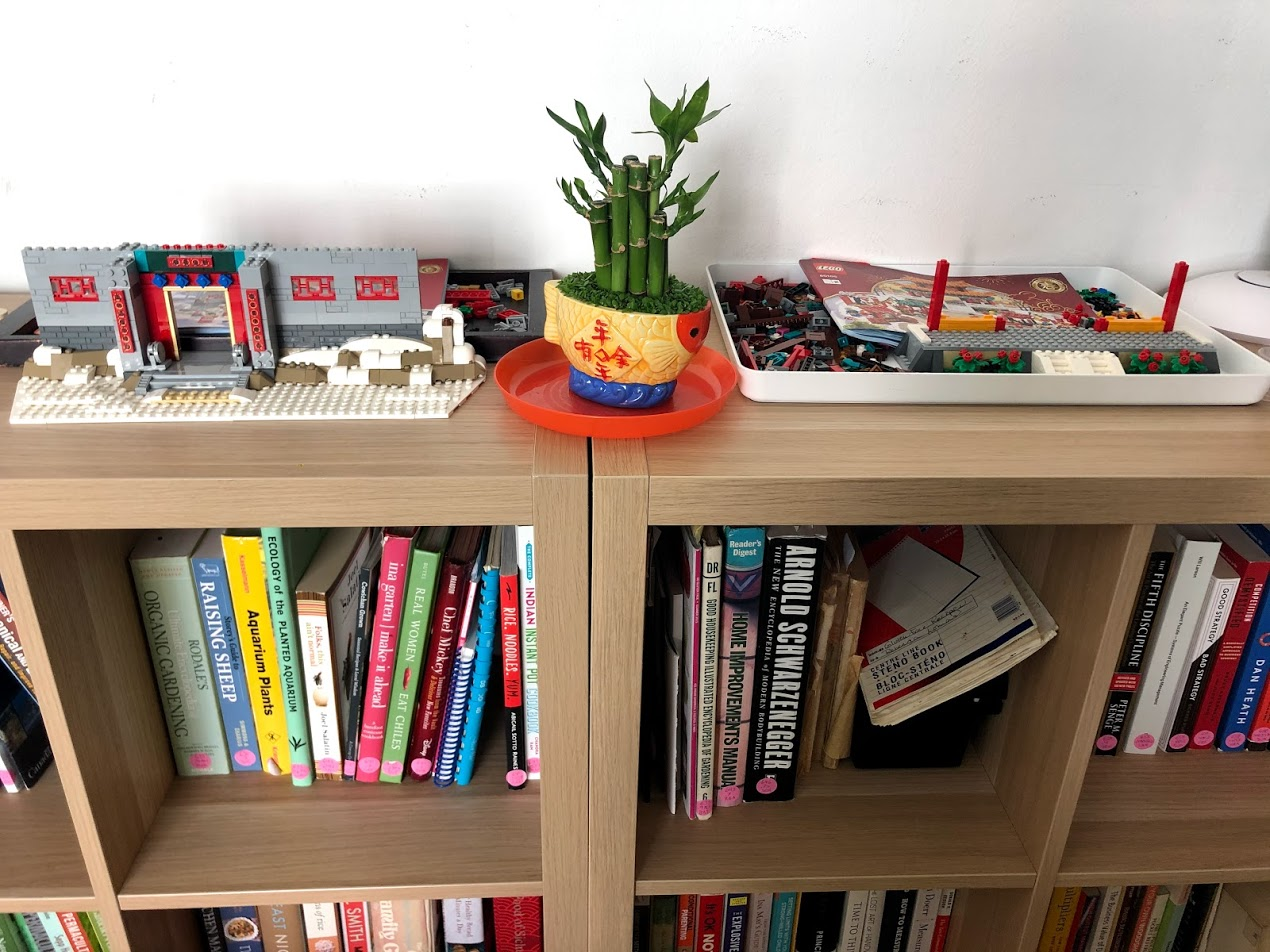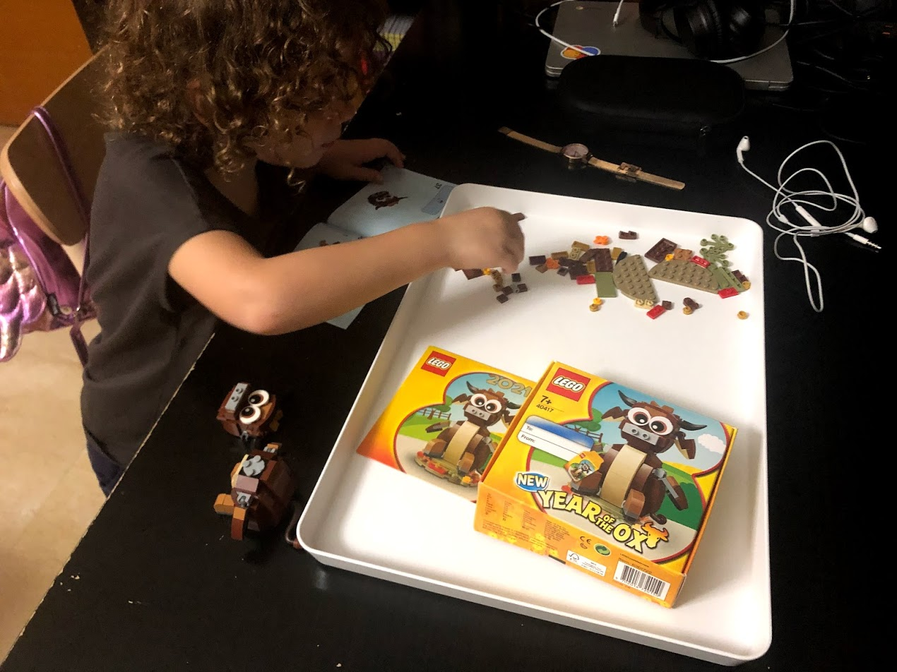 New Year's Day we made sure to eat something sweet for a good luck, didn't sweep the floors or our luck away all day, and spent the day doing what we would like to do all year, so we avoided the housework and schoolwork, spent the whole morning at the pool and playground, and had a Lego building afternoon. The kids are working on New Year Lego sets: Spring Festival Market 2020 and also Story of Nian which shows a Lion Dance in front of a Chinese Temple. We also got free Ox for buying so much Lego too.