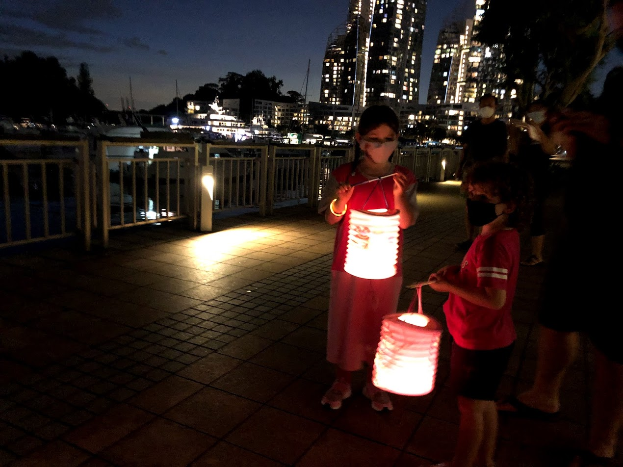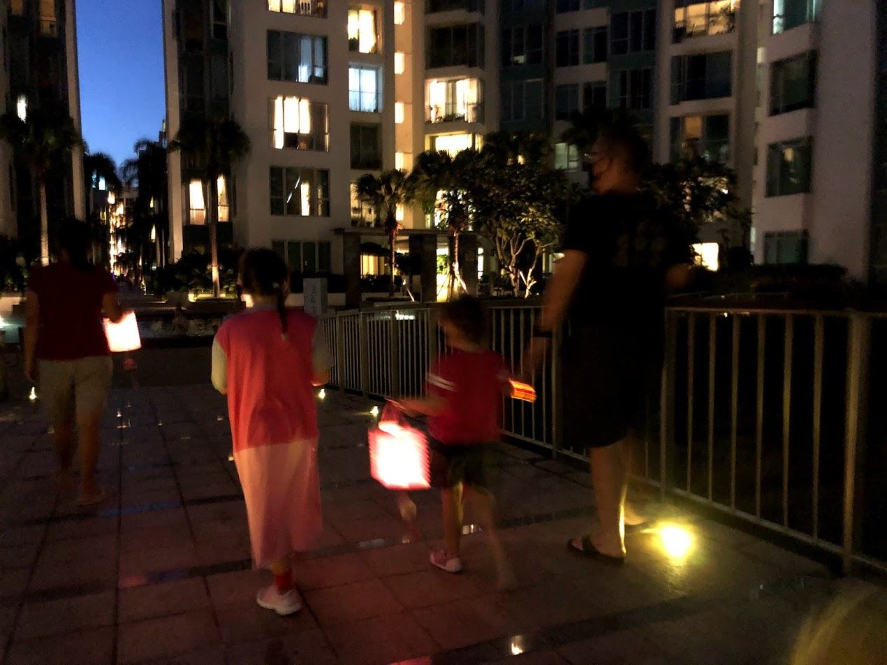 This East Asian holiday is usually celebrated with a family dinner and a lantern walk to see the moon. We just had a regular dinner together and then slipped out for a walk around our condo complex as soon as it got dark.