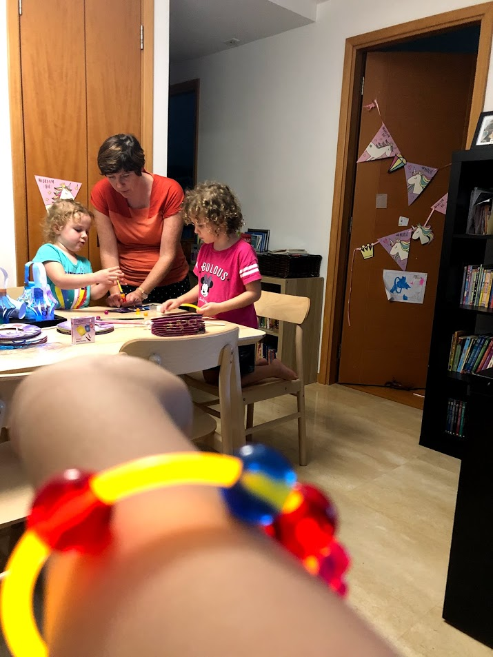 We had made many lanterns over the last few weeks to decorate our house, but we used store bought designs for our walk. We also put on glow-in-the-dark bracelets and decorated them with glowing beads too.