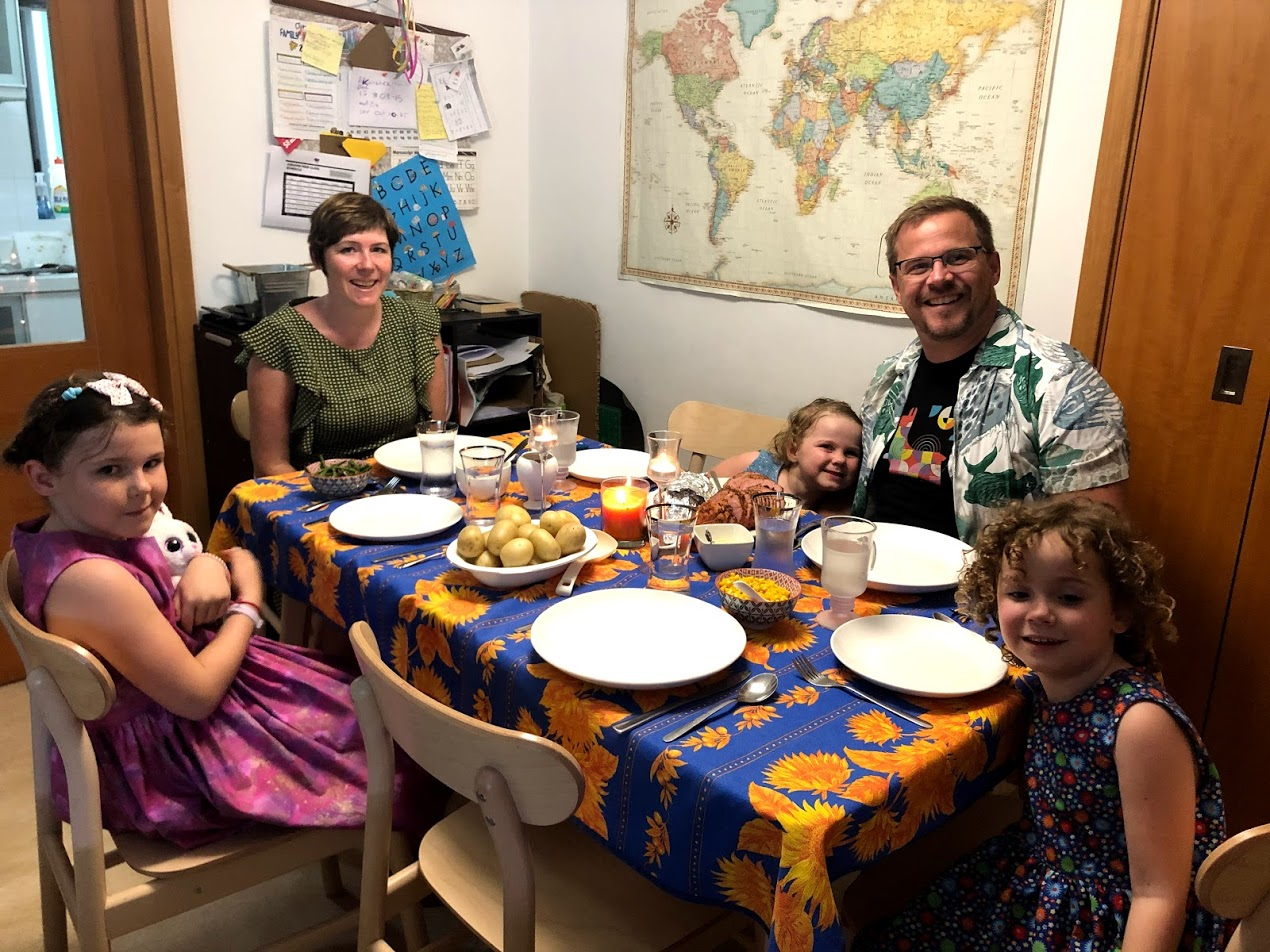 After dinner, the girls turned out all the lights, asked Jonathan to shine his phone light on them, and put on a "Thanksgiving concert." The 3 girls started out in a row, saying what they were thankful for individually and then they began dancing in circles and singing a "Thankful" song of their own making. They said they were thankful for each person in their family, calling out each person by name; oh, and thankful for Singapore too.